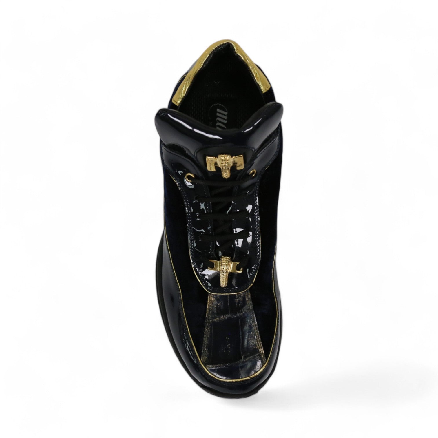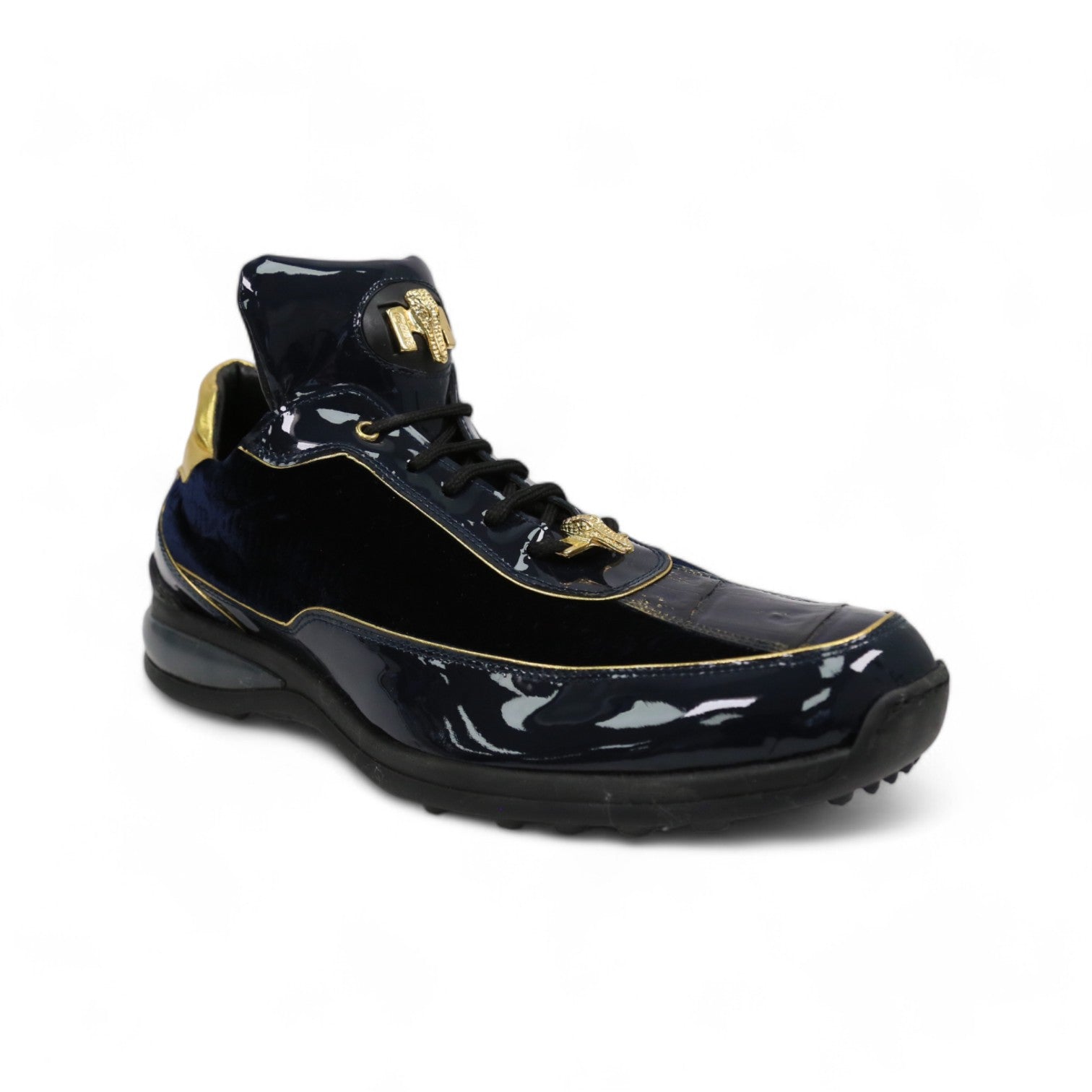 Mauri 8420 Bubble Men's Shoes Gold & Wonder Blue Exotic Crocodile / Velvet / Patent Leather Casual Sneakers (MA5411)(Special Order)