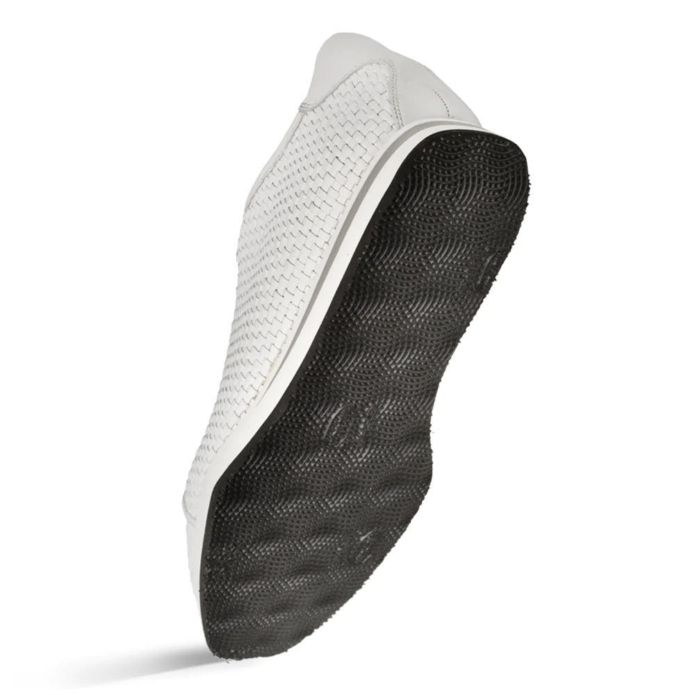 A spectacular, angularly shaped sport oxford with design complexity which includes a seven-tiered lace plate, richly woven calfskin, and a butterfly light rubber sole.