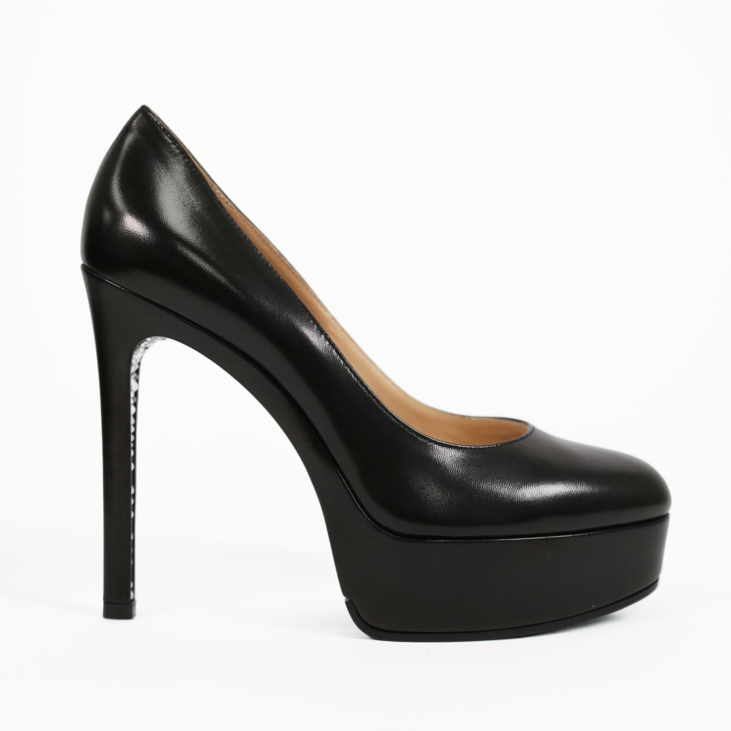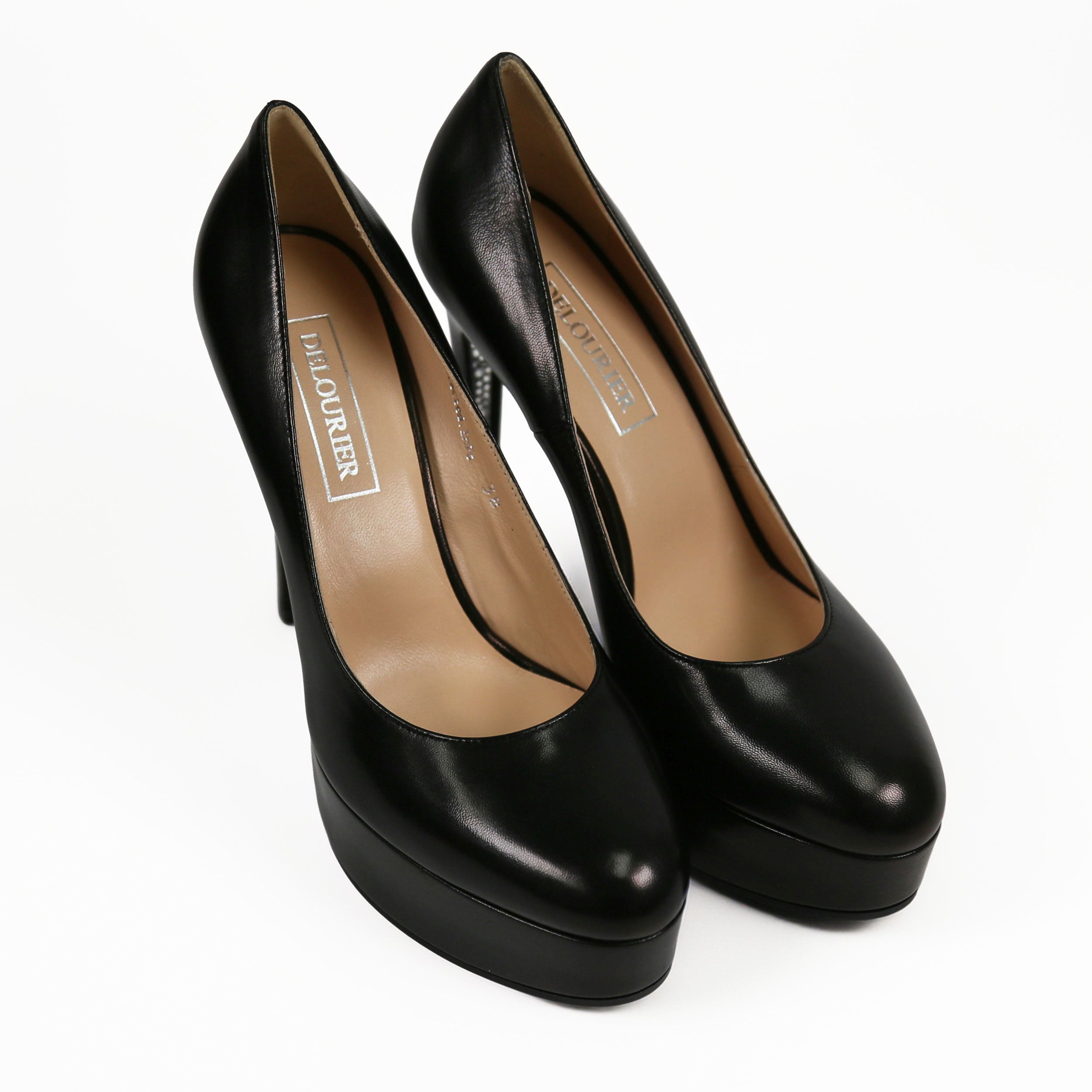 Delourier Women's Shoes Lambskin Leather Crystalized High-Heel Flatform (DLR1000)