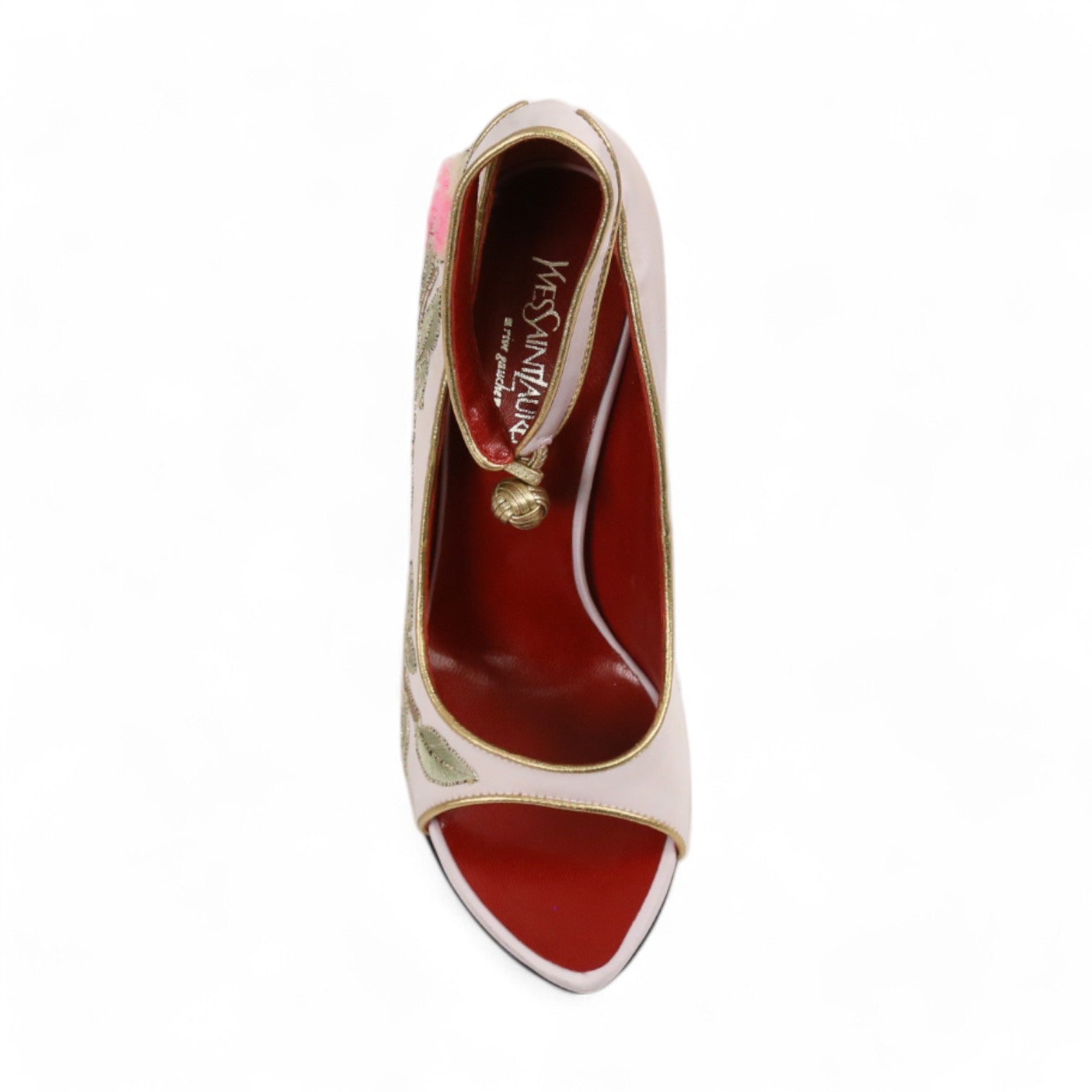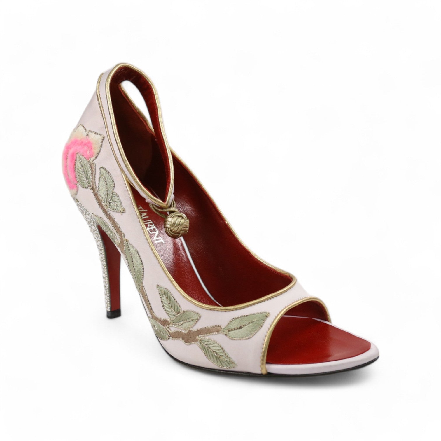 Yves Saint Laurent Lotus Women's Shoes Fabric / Leather Crystalized Ankle-Strap Sandals (YSLS1000)