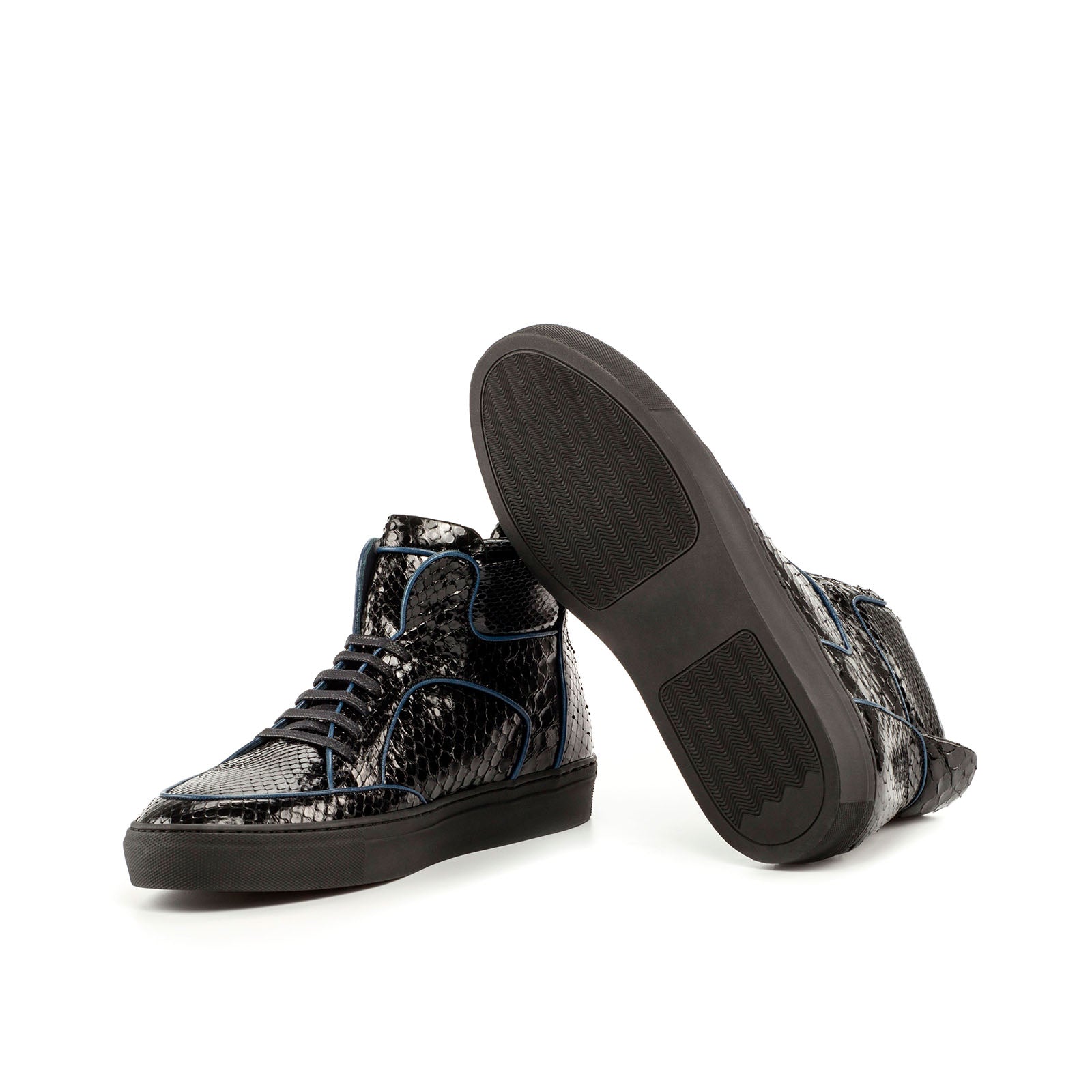 Ambrogio Men's Handmade Custom Made Shoes Black Exotic Snake-Skin High Top Sneakers (AMB1114)