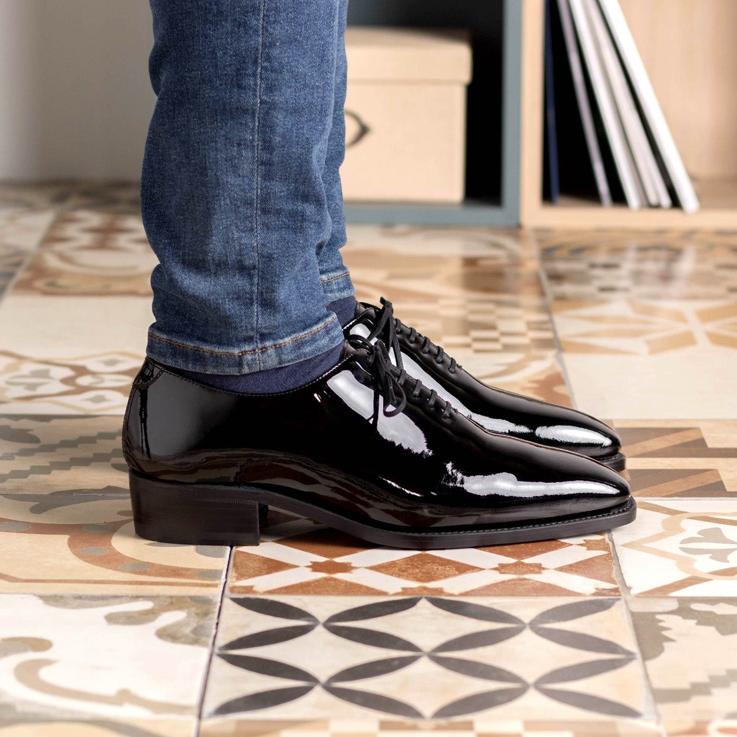 • Ambrogio Bespoke Men's Shoes Black Patent Leather Belgravia High-Heel Wholecut Oxfords (AMB2388)