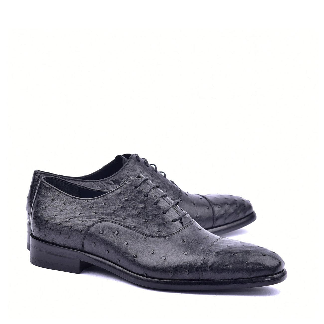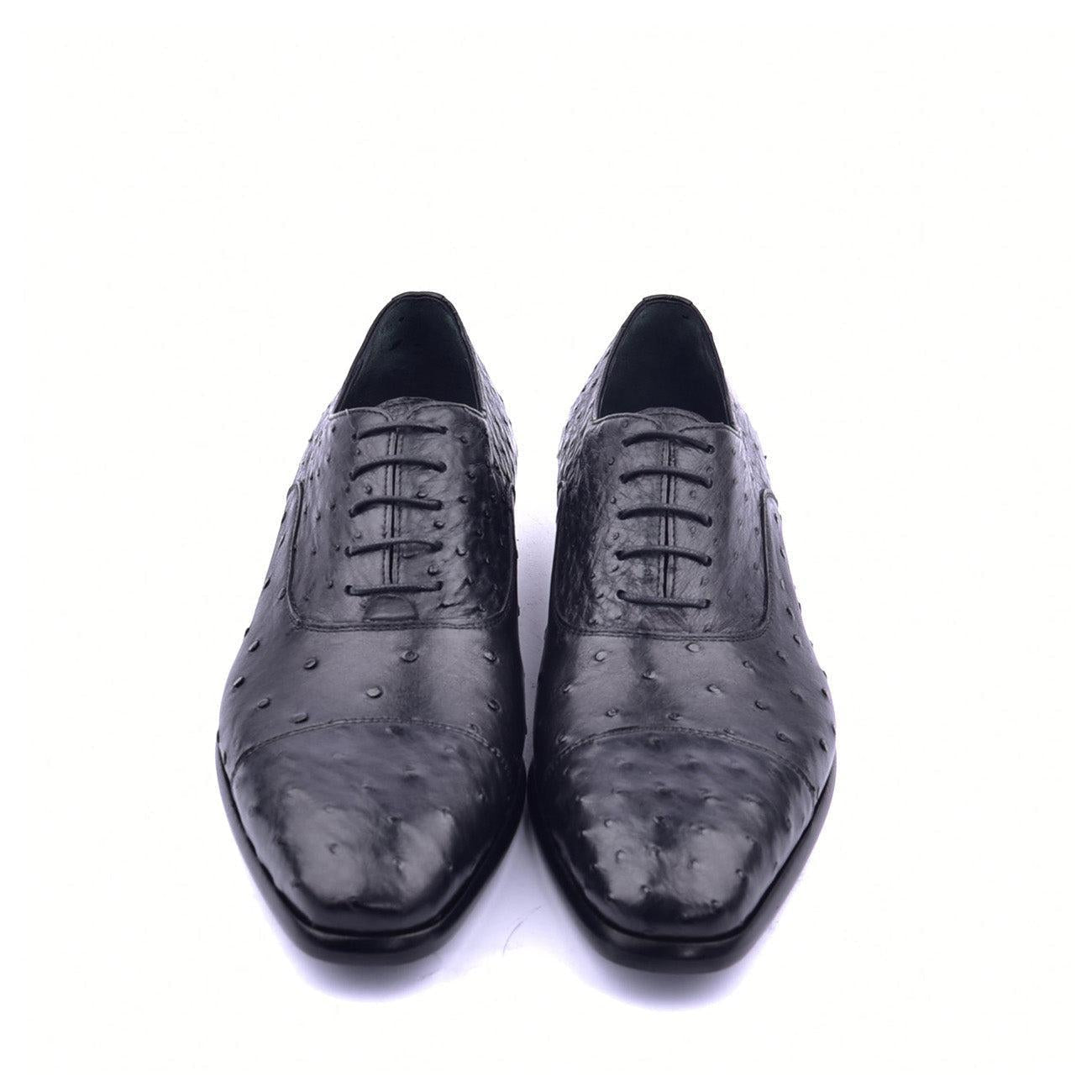• Corrente C009 6265 Men's Shoes Black Genuine Ostrich Cap toe Lace up Oxfords (CRT1372)