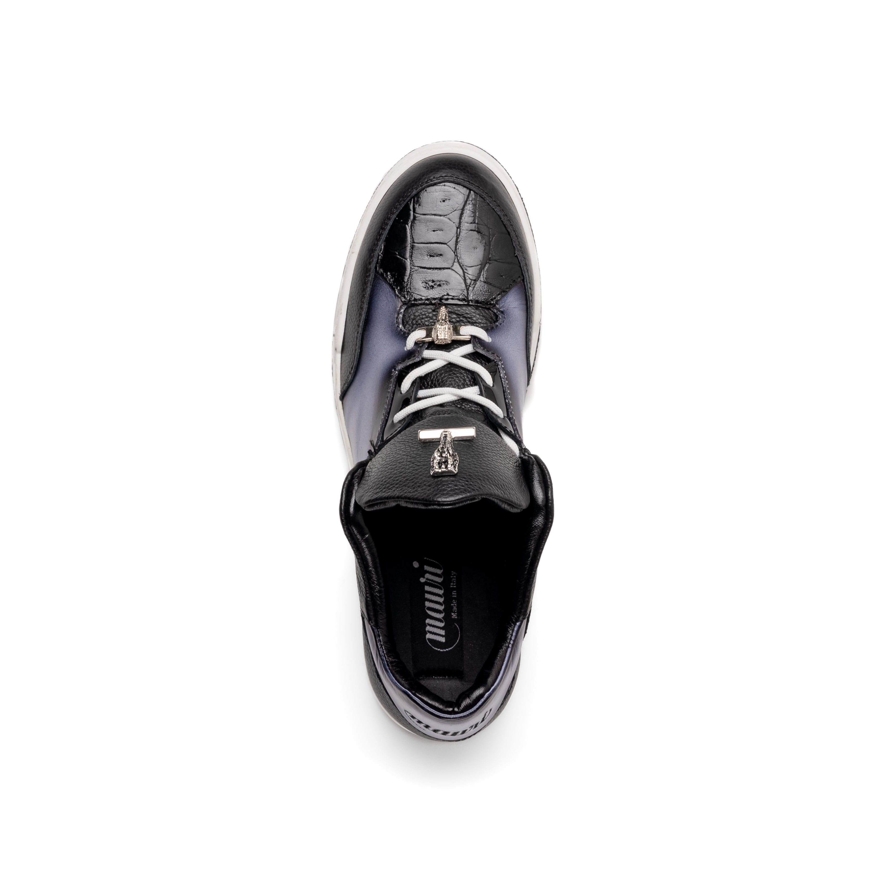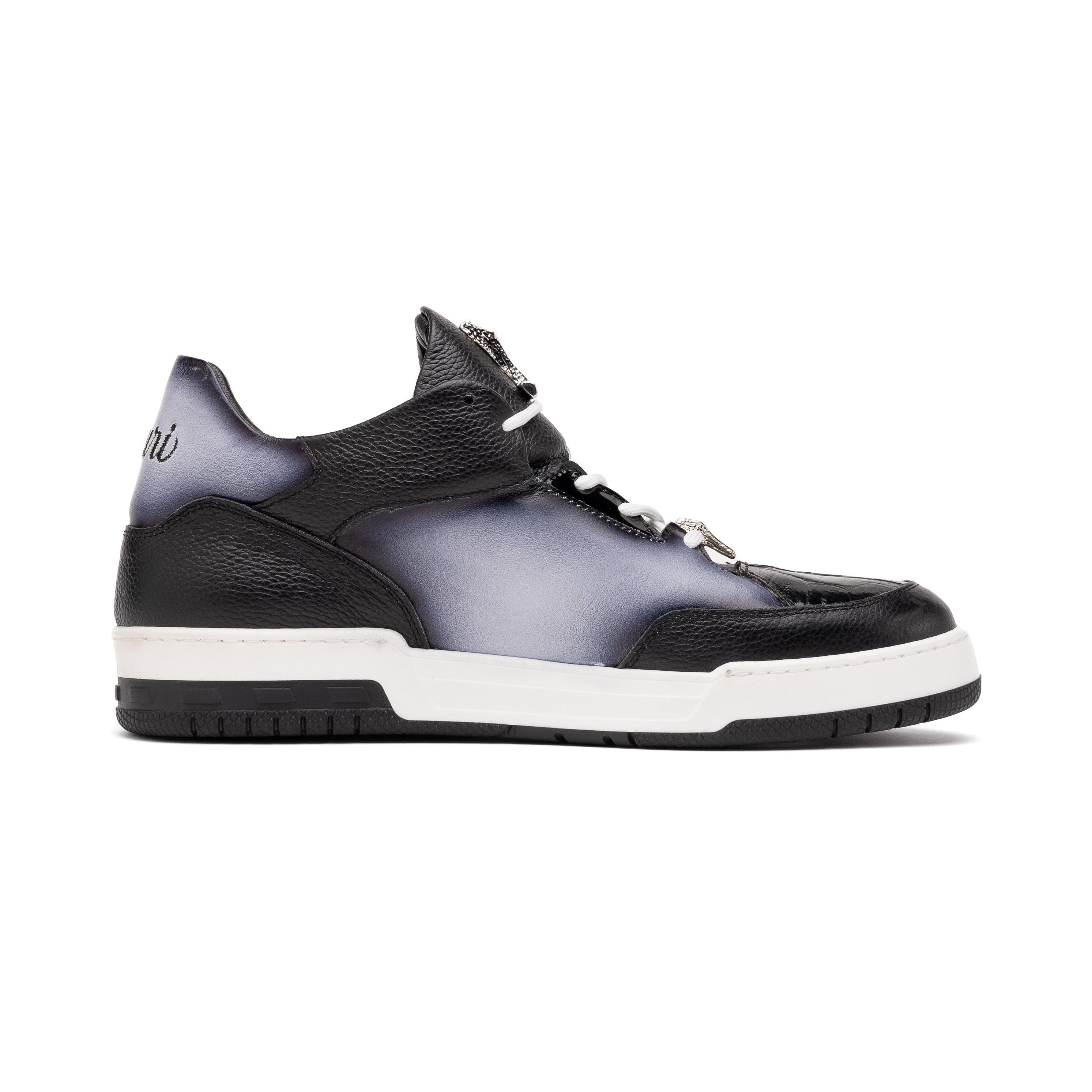 Mauri Ghost 8423 Men's Shoes Black & White Exotic Crocodile / Nappa / Leather Sneakers (MA5571)
