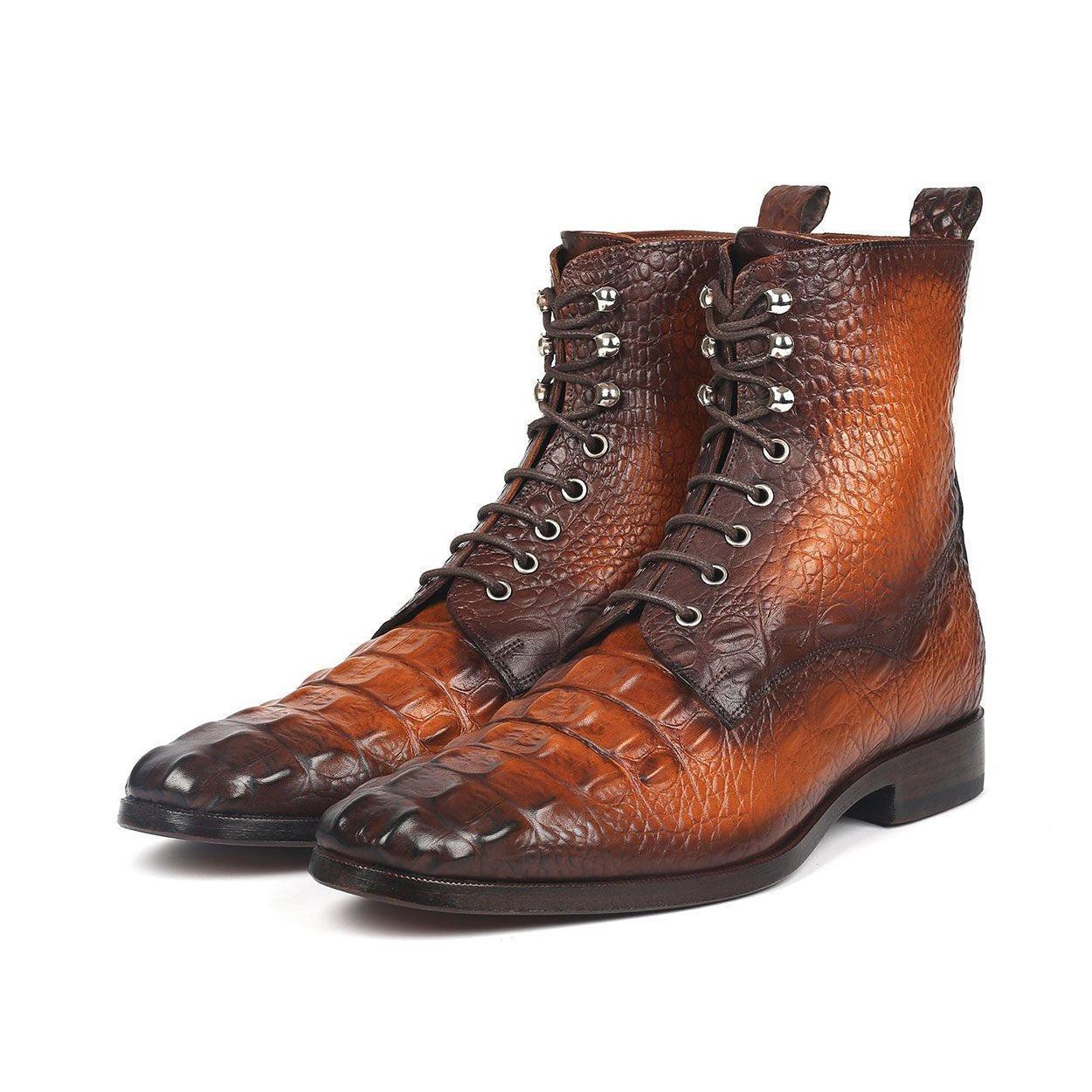 Paul Parkman BT744-BRW Men's Shoes Brown Crocodile Print / Calf-Skin Leather Lace-Up Boots (PM6277)