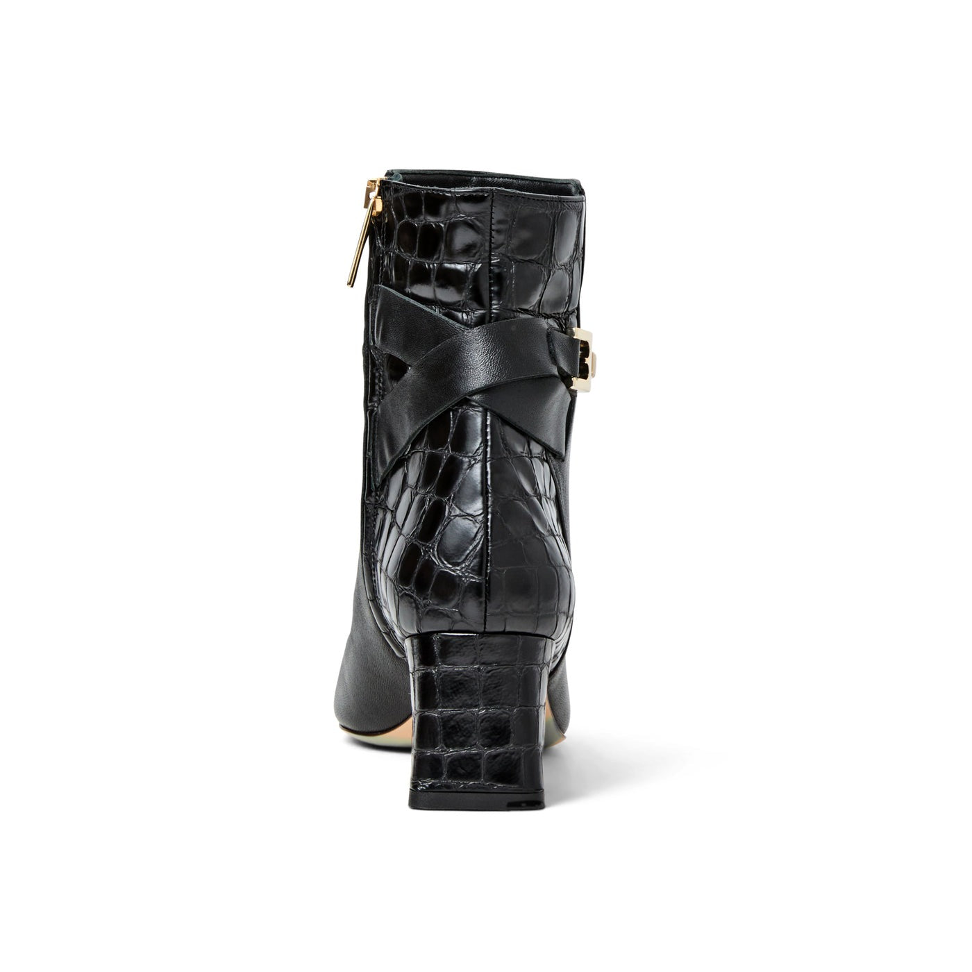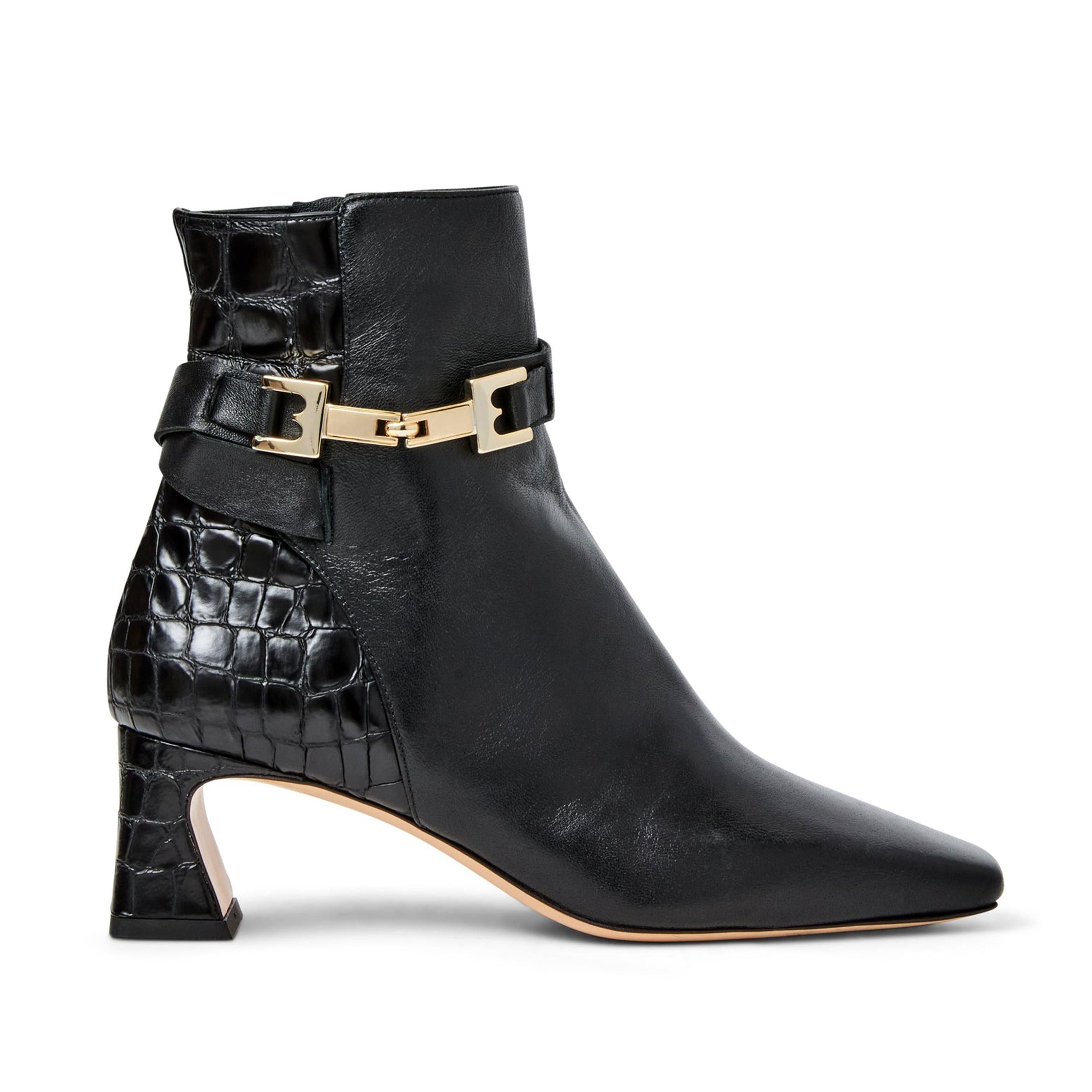 Elevate any outfit with the unique contrast and luxe excitement featured in the details of the Opal ankle boots. Meticulously designed from smooth premium and croc-effect leather that looks as if they’ve been spliced together at the back, they’re adorned with a signature polished bit. The square toes and curved block heel add a unique geometric element.