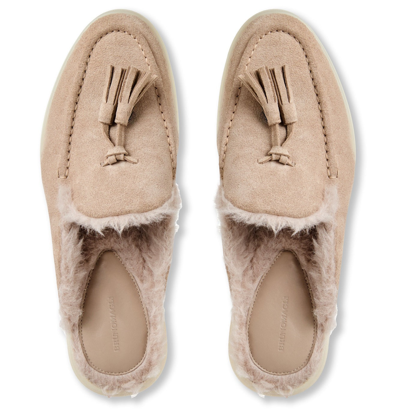Where casual cozy meets sophistication, the Palmer loafers are a unique style imbued with incredible comfort. They’re constructed from premium supple suede and have an insulating fur lining and swishy tassels for added interest. Their backless silhouette makes them easy to slip on on a blustery day.