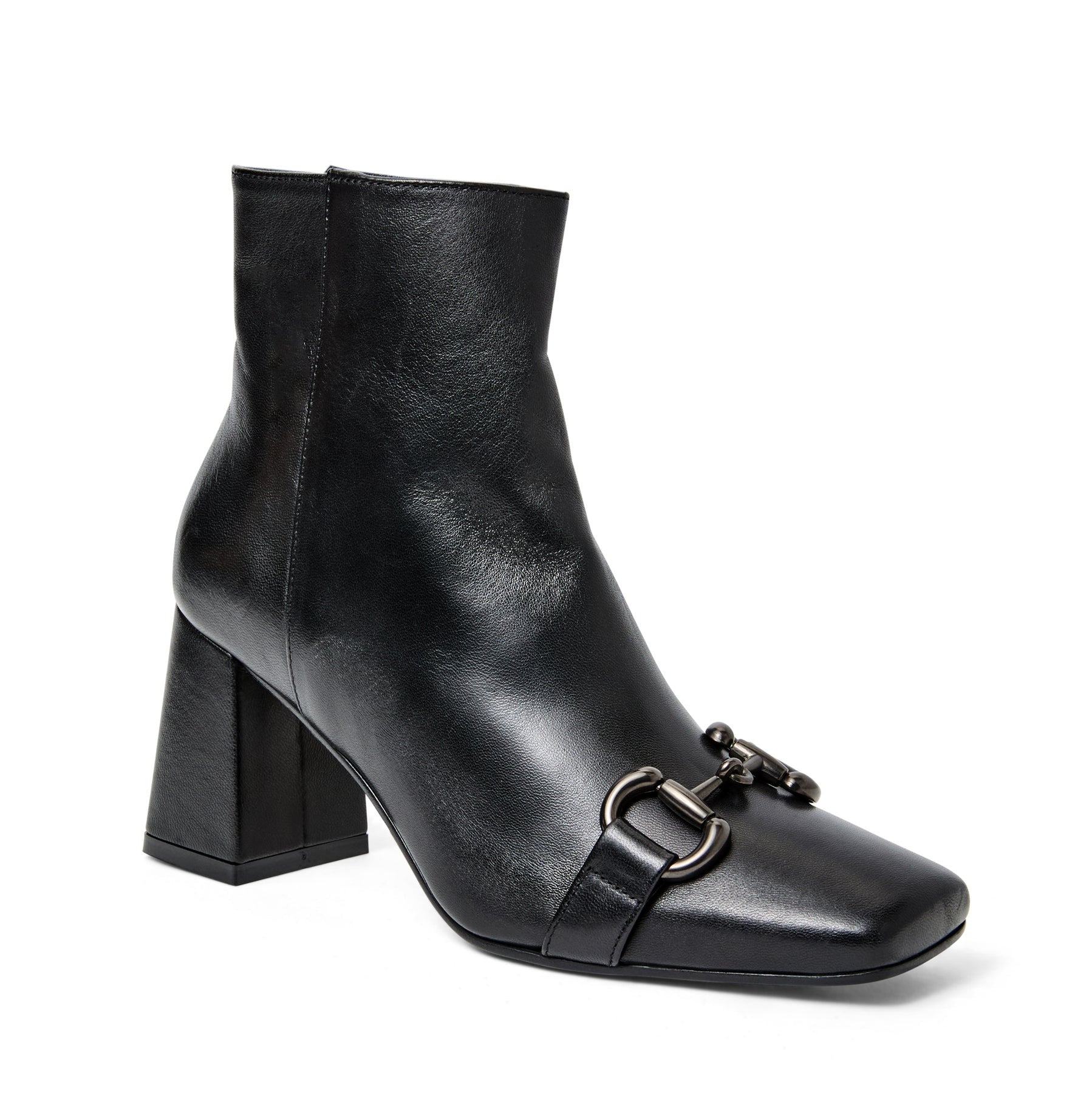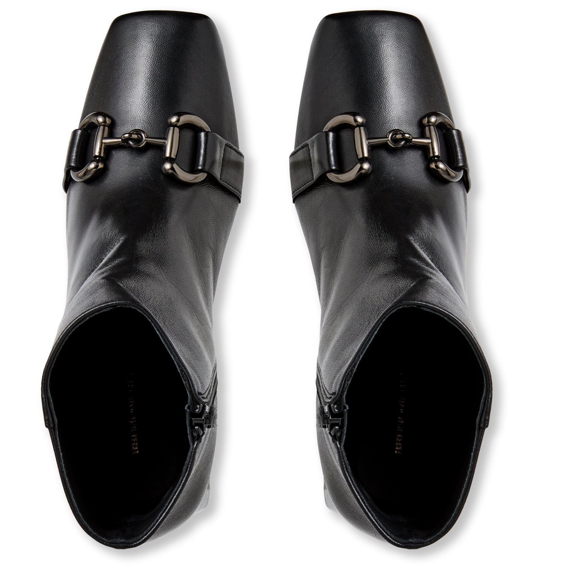 A classic ankle style with just a bit of added flair, the Pearl boots are a unique addition to your transitional wardrobe. Impeccably crafted in Italy, they’re made from premium leather and feature a signature embellishment for a touch of polish. The pointed toes and angular block heel work together to create geometric interest.