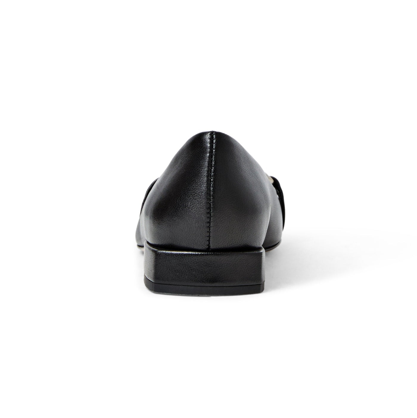 Enhanced with a bit of polish, the Perla flats keep the focus on versatile yet luxurious details. They’re expertly designed in Italy from glossy crinkled patent leather for unique textural interest and are topped with refined embellishments that radiate pure elegance. The short block heels mimic the geometric details of the square toes.