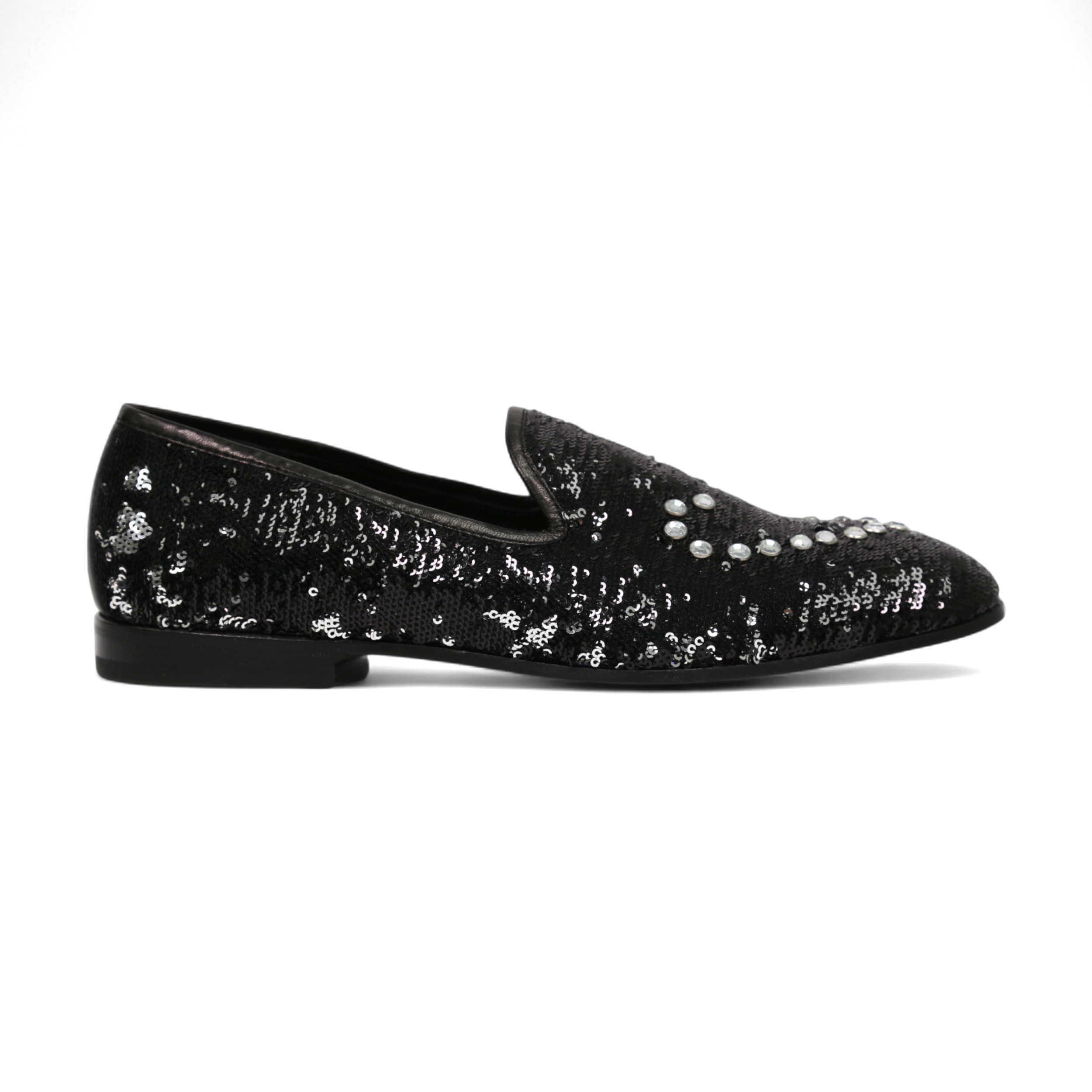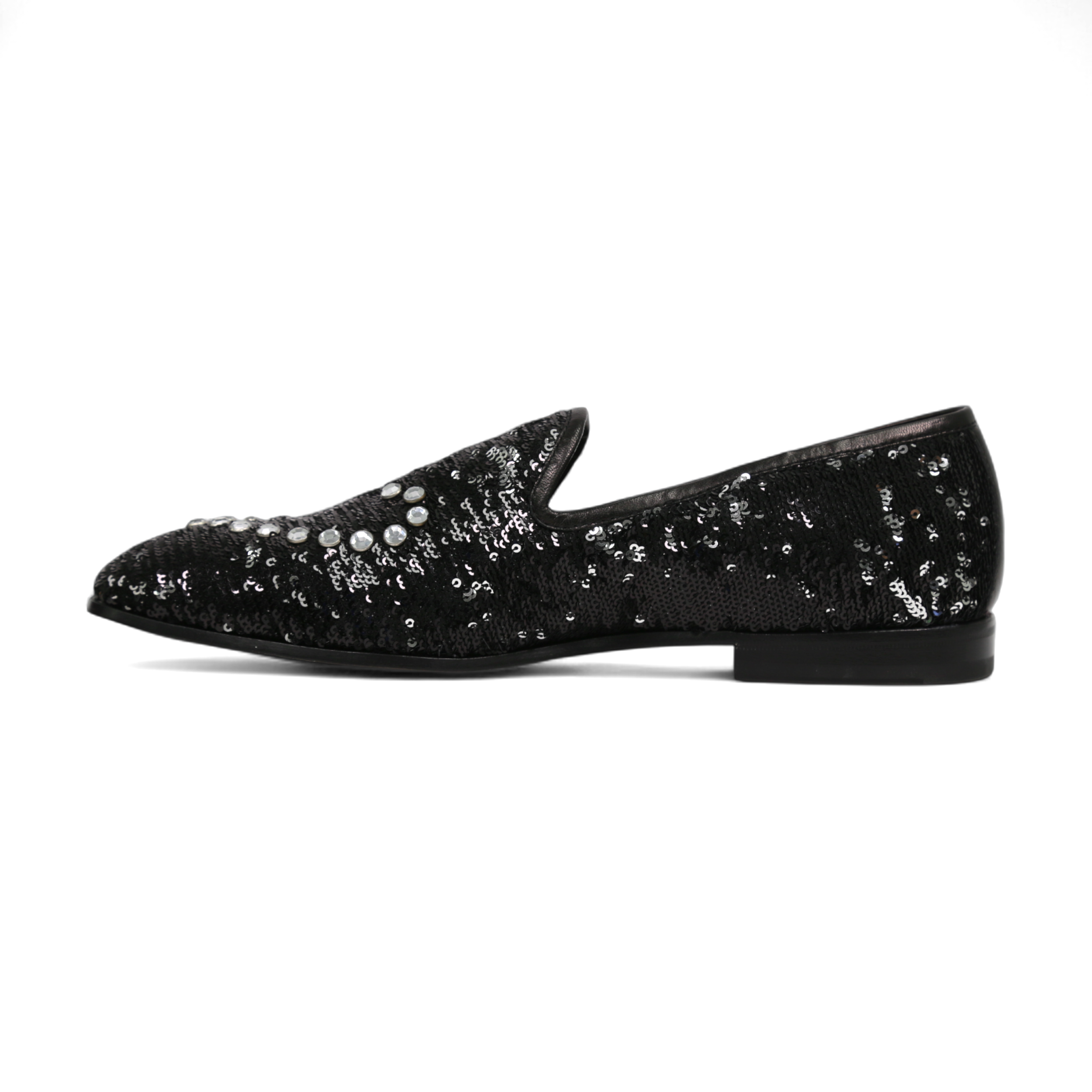• Luxurious Cesare Paciotti Men's Paillettes Black Silver Loafers (CPM5107)
