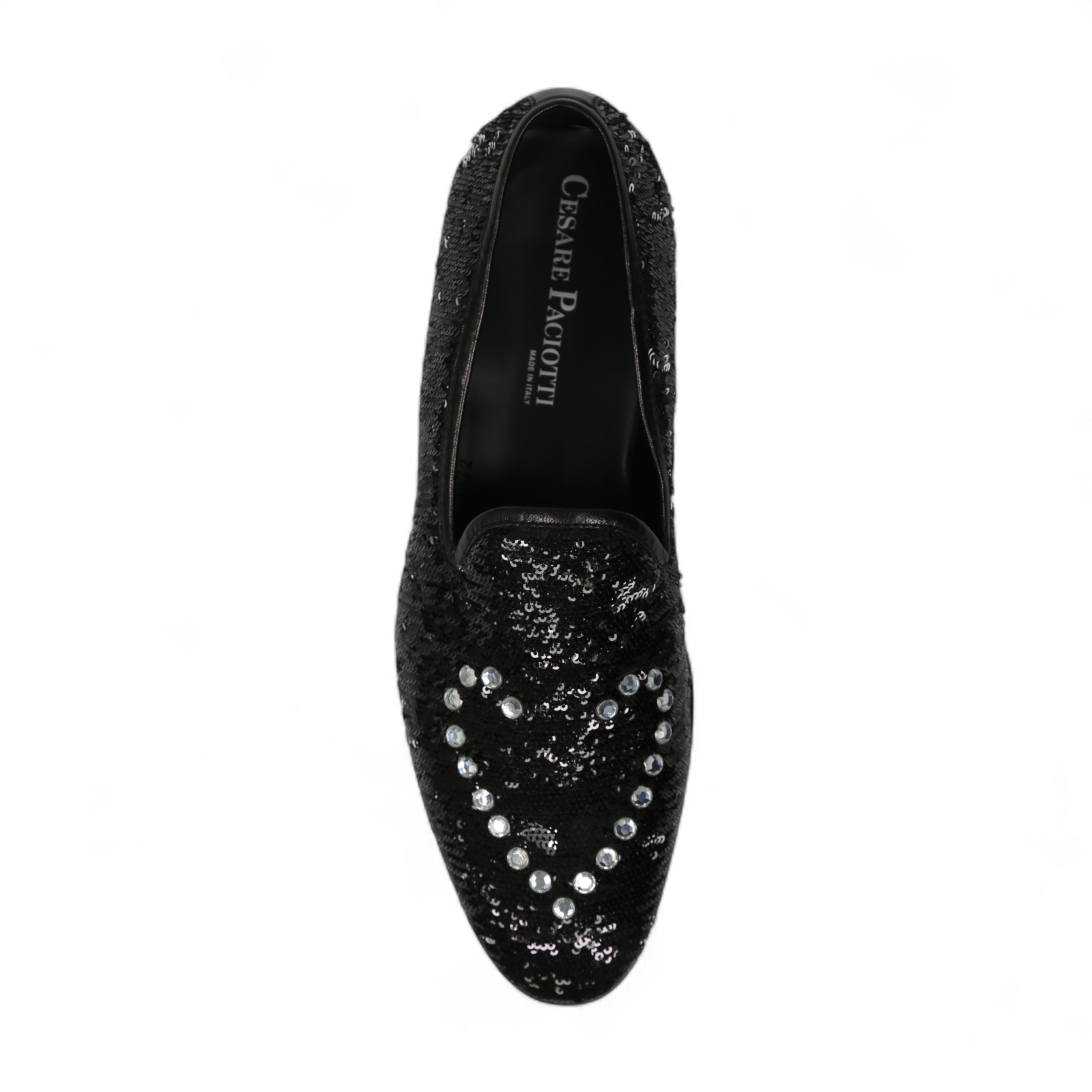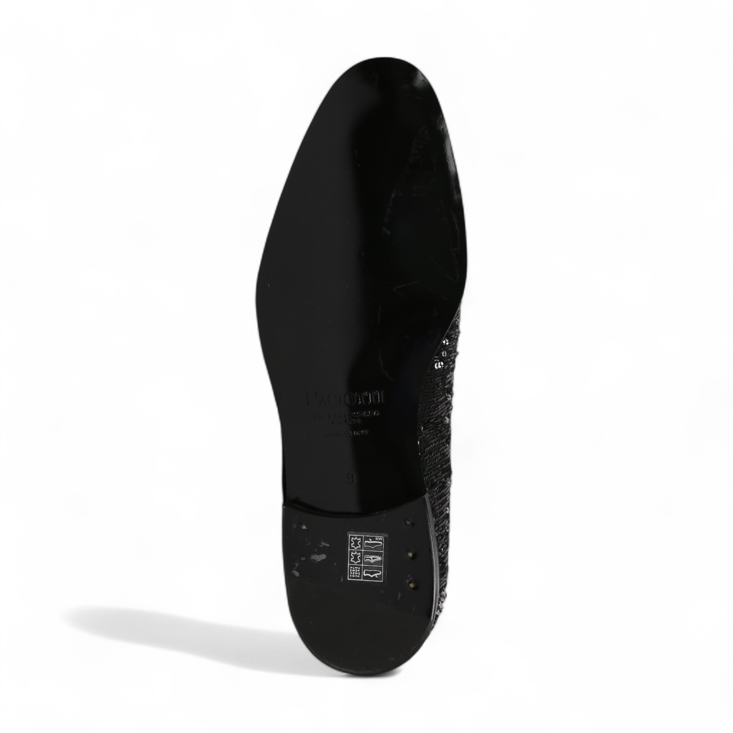 Cesare Paciotti Luxury Italian Men's Paillettes Black Silver Formal Loafers (CPM5107)