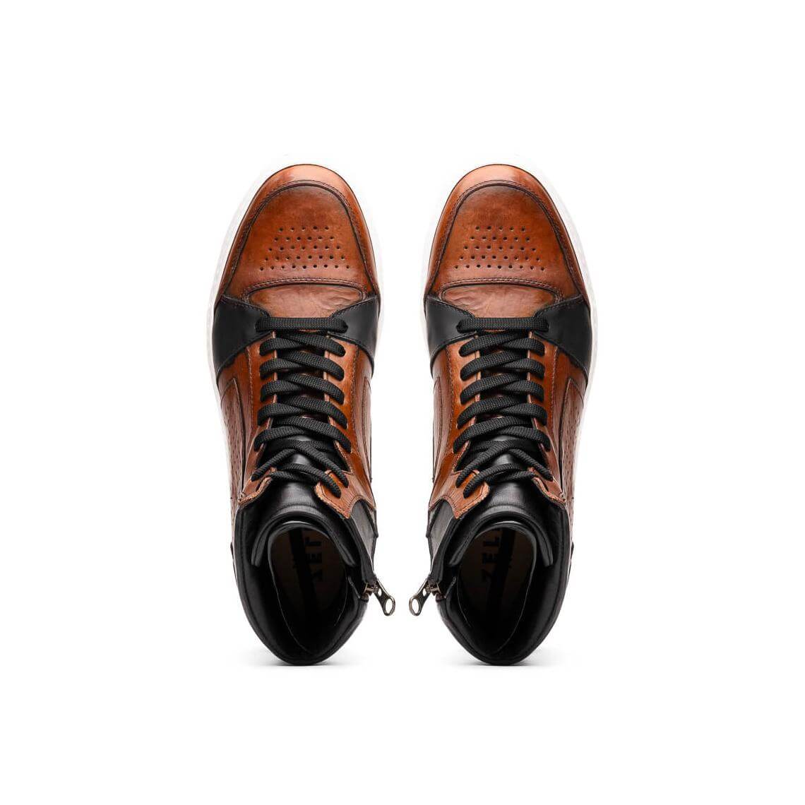 Zelli Italia Bravo Men's Shoes Cognac & Brown Burnished Calf-Skin Leather High-Top Sneaker (ZEL1061)