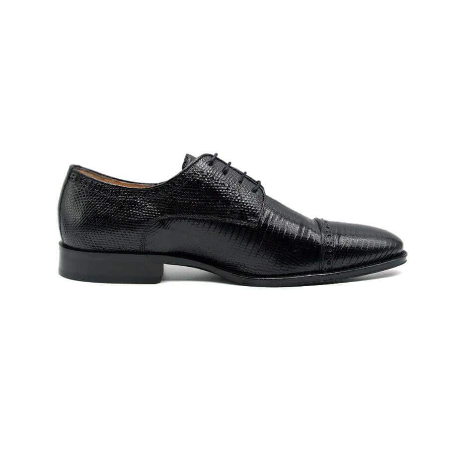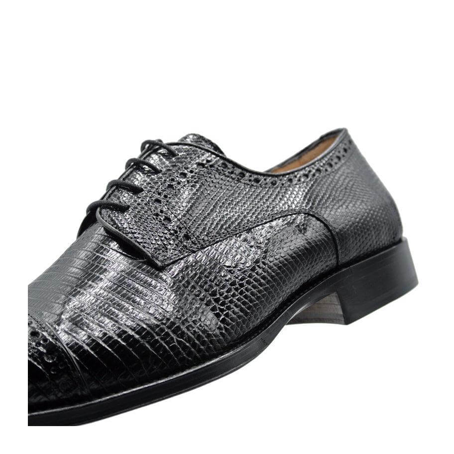 • Zelli Italia Giovanni Men's Shoes Black Teju Lizard Skin Derby (ZEL1037)