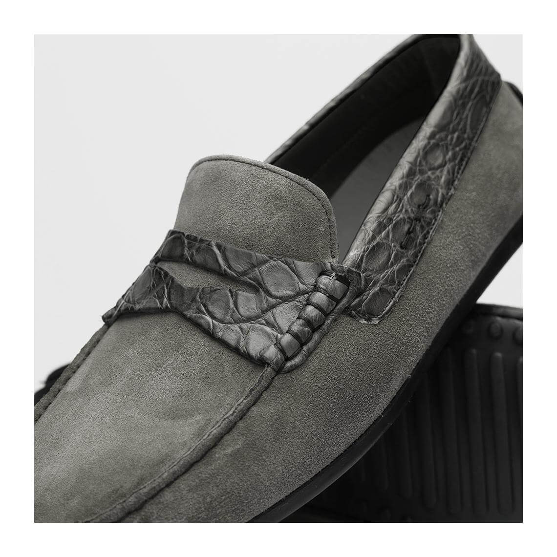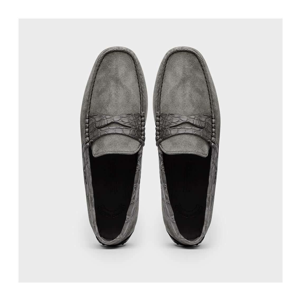 • Zelli Italia Monza Men's Shoes Gray Calf-Skin Suede & Crocodile Skin Driver (ZEL1044)