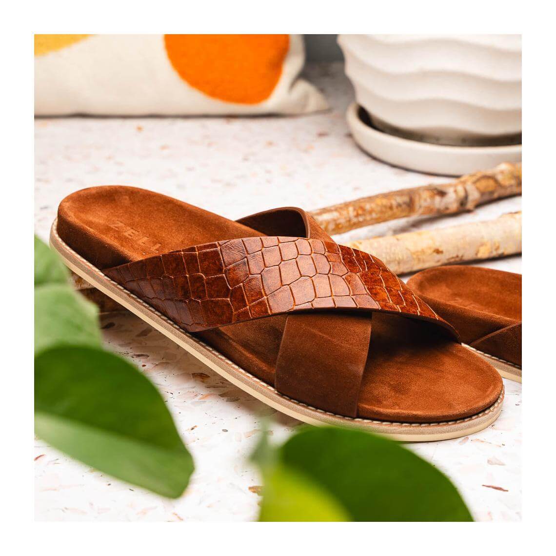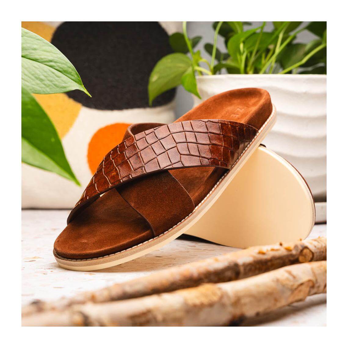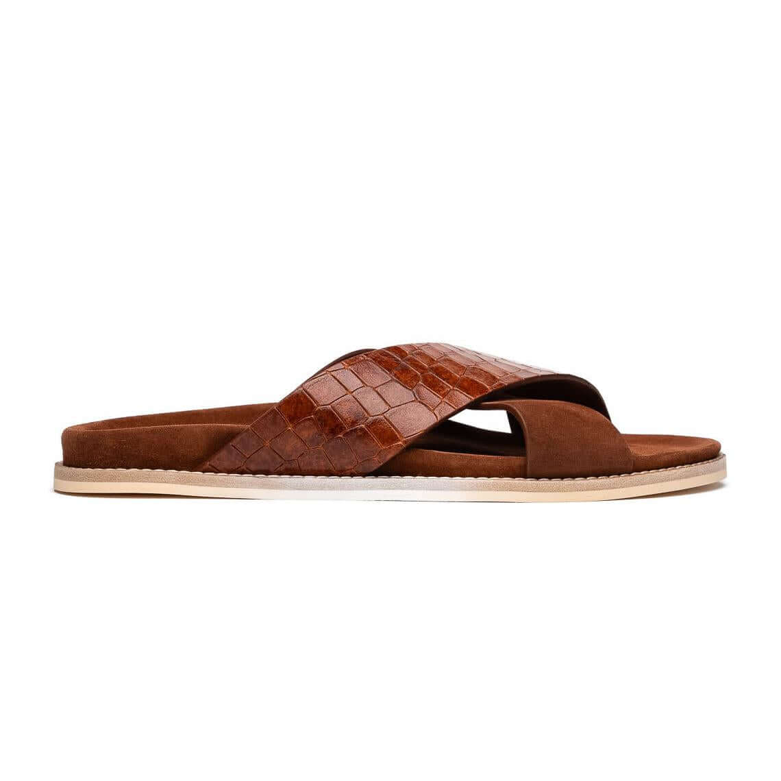 • Zelli Italia Rena Men’s Shoes Cognac Crocodile Print / Goat-Skin Leather Sandal (ZEL1013)
