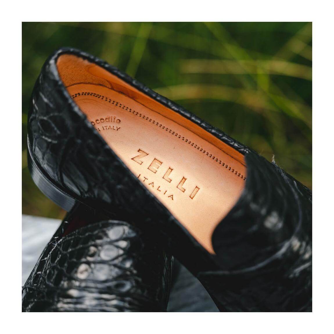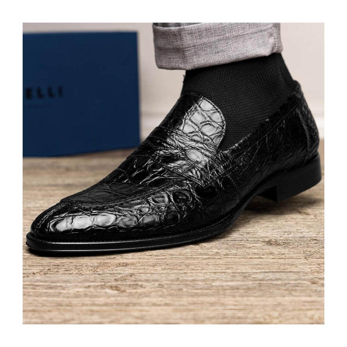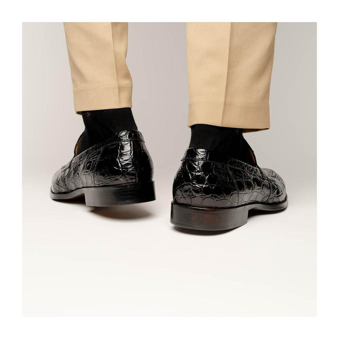 • Zelli Italia Roma Men's Shoes Black Crocodile Skin Penny Loafer (ZEL1003)