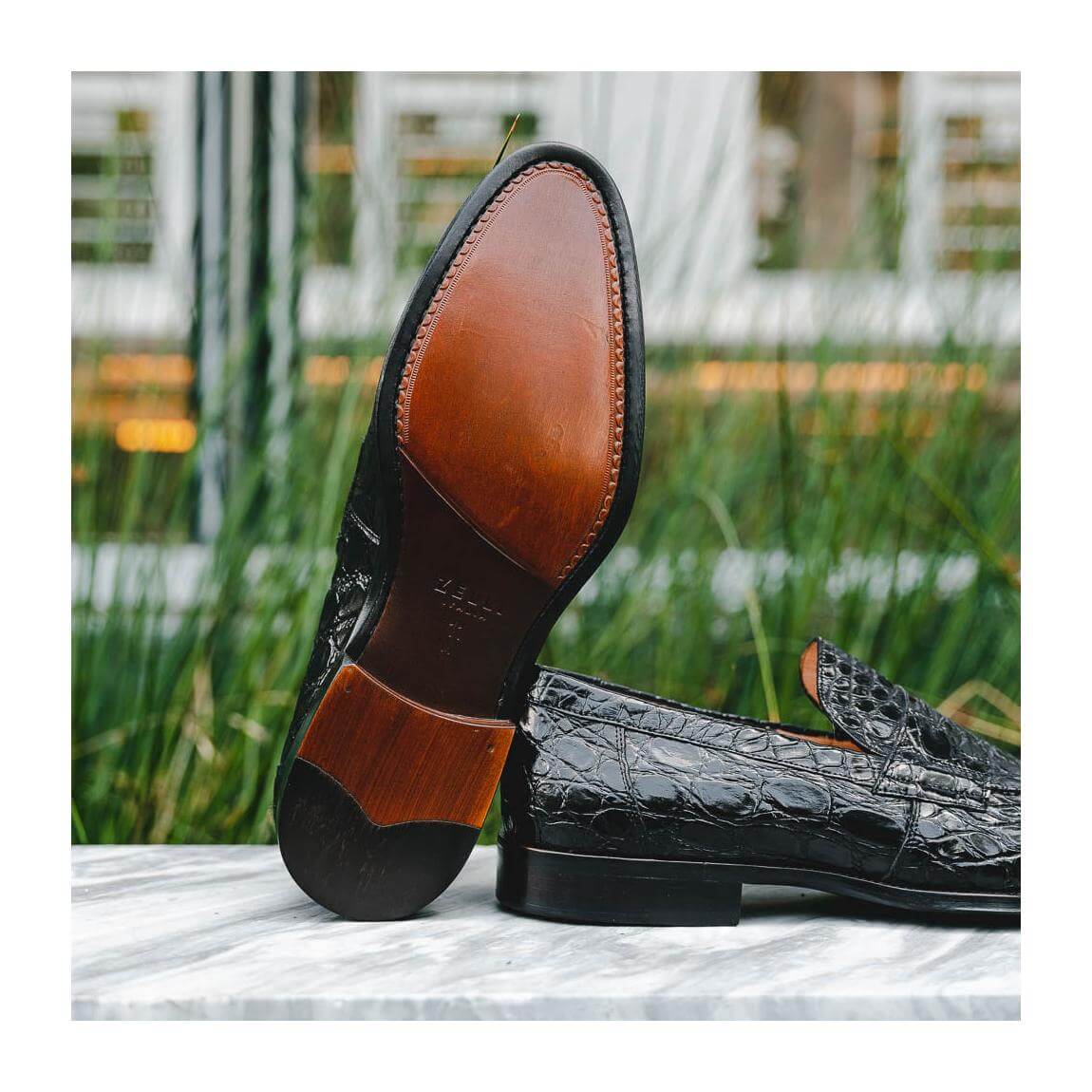Our new Roma in Certified Caiman Crocodile is an updated penny loafer with an modern toe shape. With its clean styling, this elegant classic goes seamlessly from business to dress casual affairs. The Blake Canalino Stitch construction provides a lightweight but durable shoe that is sleek, flexible and comfortable. The new Poron® insole provides extra comfort and support.