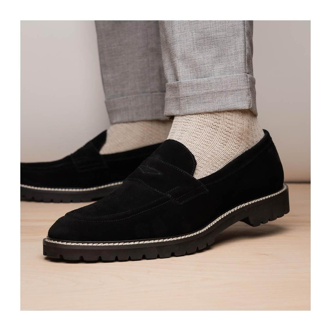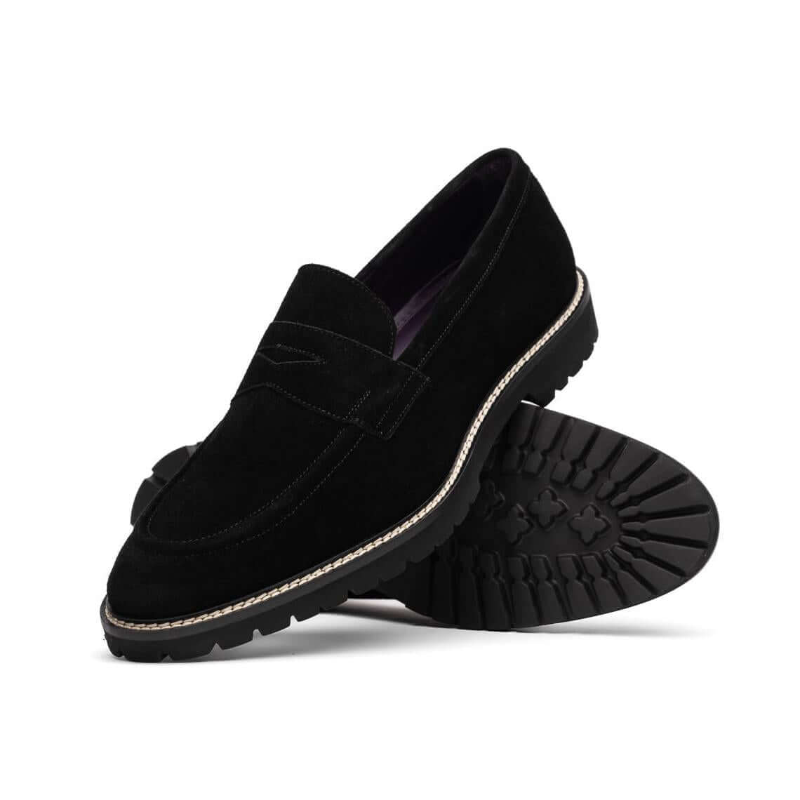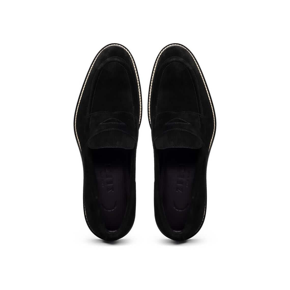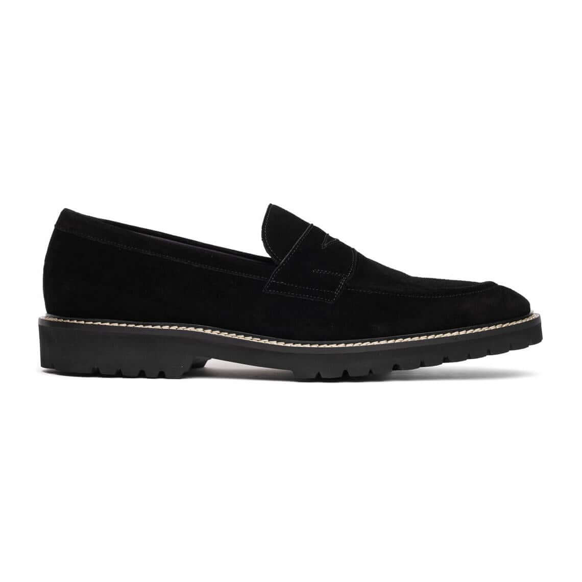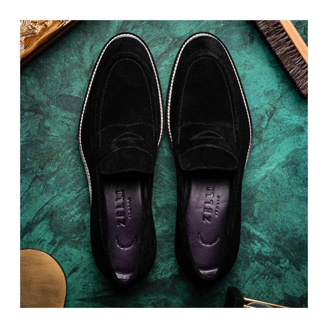 • Zelli Italia Roma Men's Shoes Black Suede Leather Penny Loafer (ZEL1032)