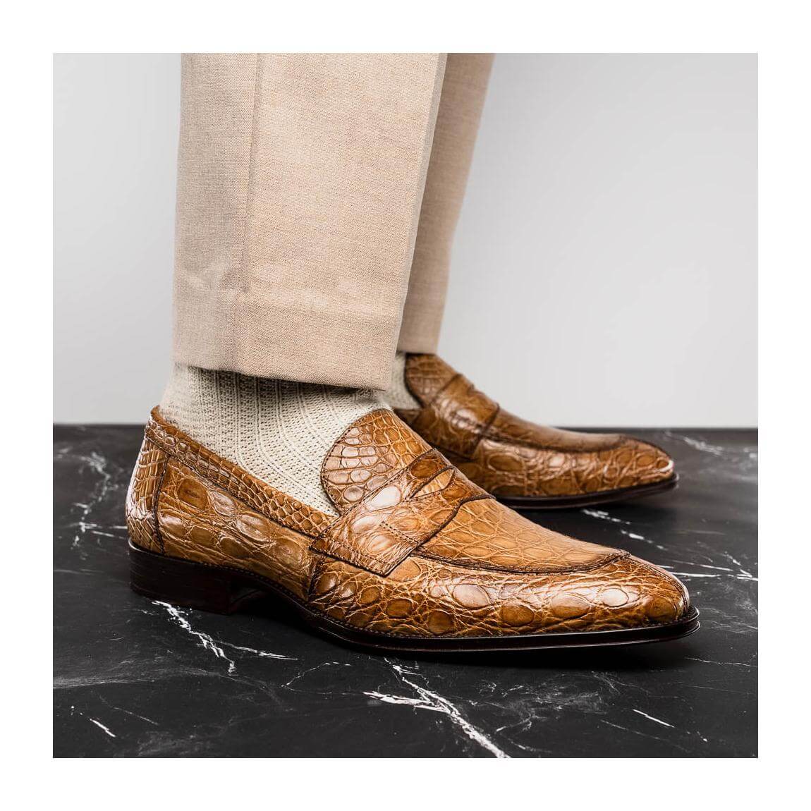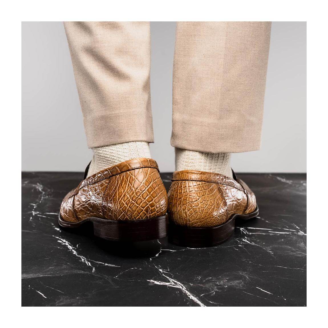 Our new Roma in Certified Caiman Crocodile is an updated penny loafer with an modern toe shape. With its clean styling, this elegant classic goes seamlessly from business to dress casual affairs. The Blake Canalino Stitch construction provides a lightweight but durable shoe that is sleek, flexible and comfortable. The new Poron® insole provides extra comfort and support.