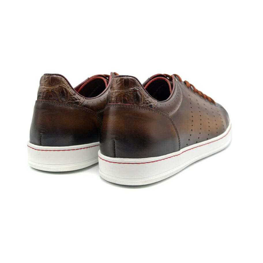 • Zelli Italia Russo Men's Shoes Brown Burnished Calf-Skin Leather Sneaker (ZEL1050)