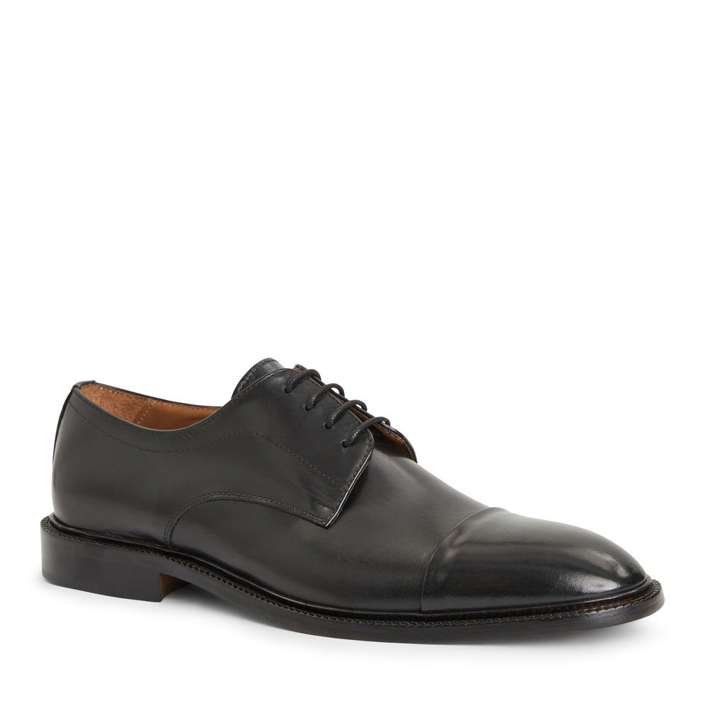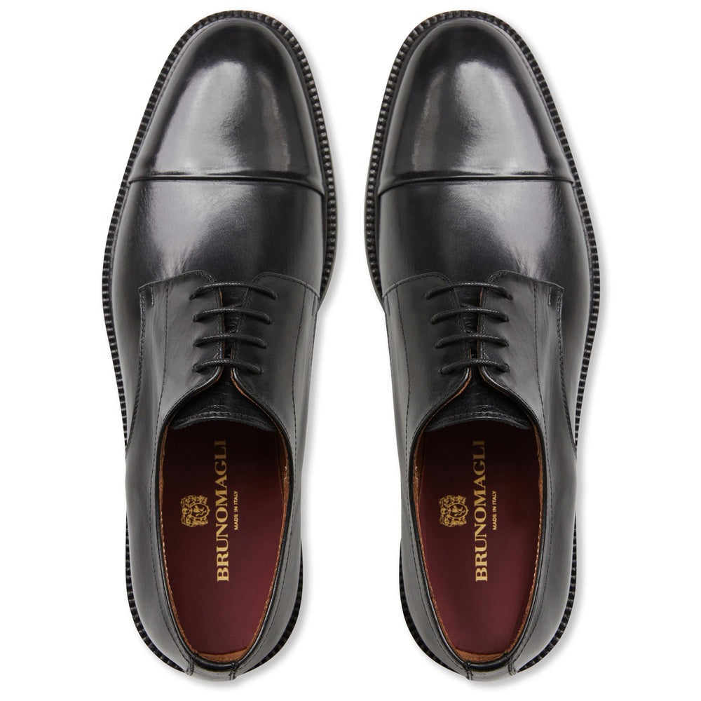 Experience timeless sophistication with our classic cap toe dress Derby from Bruno Magli. Meticulously crafted from premium leather with a refined finish, this shoe epitomizes elegance and durability. Fully leather-lined for exceptional comfort, it features a four-eye lacing system that ensures a secure fit and enhances support. The double-stitched all-leather outsole not only adds a luxurious touch but also ensures long-lasting wearability. Elevate your formal attire with this soon-to-be classic style, blending impeccable craftsmanship with timeless appeal.