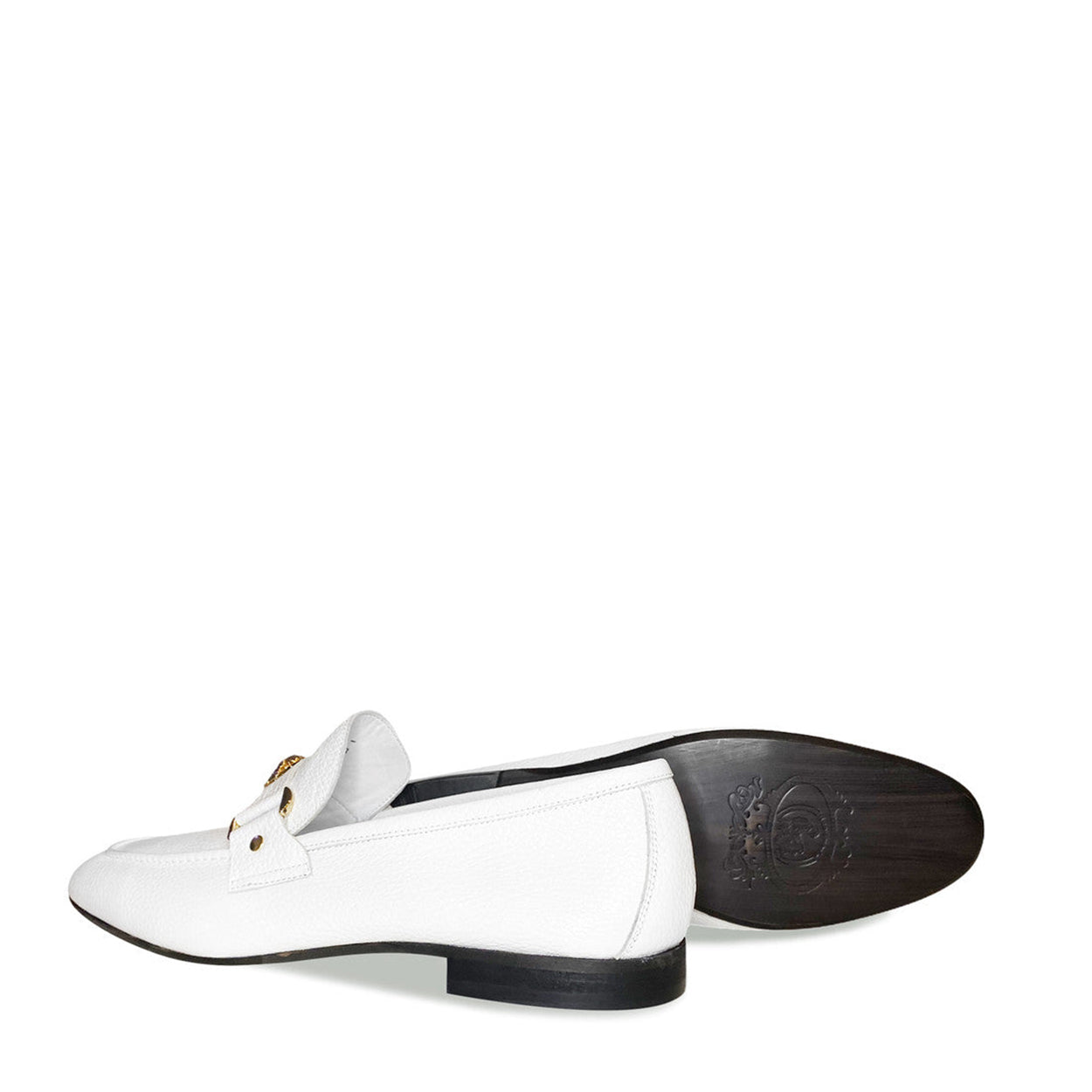 • Corrente P000667 5229 Men's Shoes White Leather with Medusa Ornament Slip On Loafers (CRT1431)