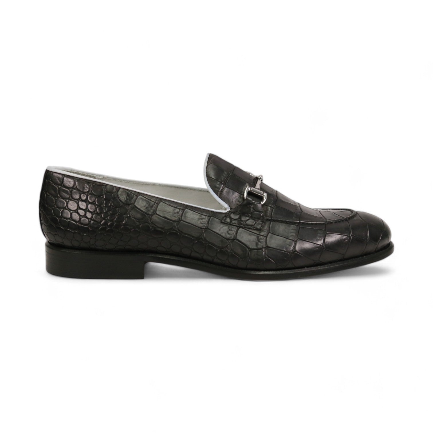 • Ambrogio Men's Shoes Crocodile Print Leather Belgian Horsebit Loafers (AMB2565)