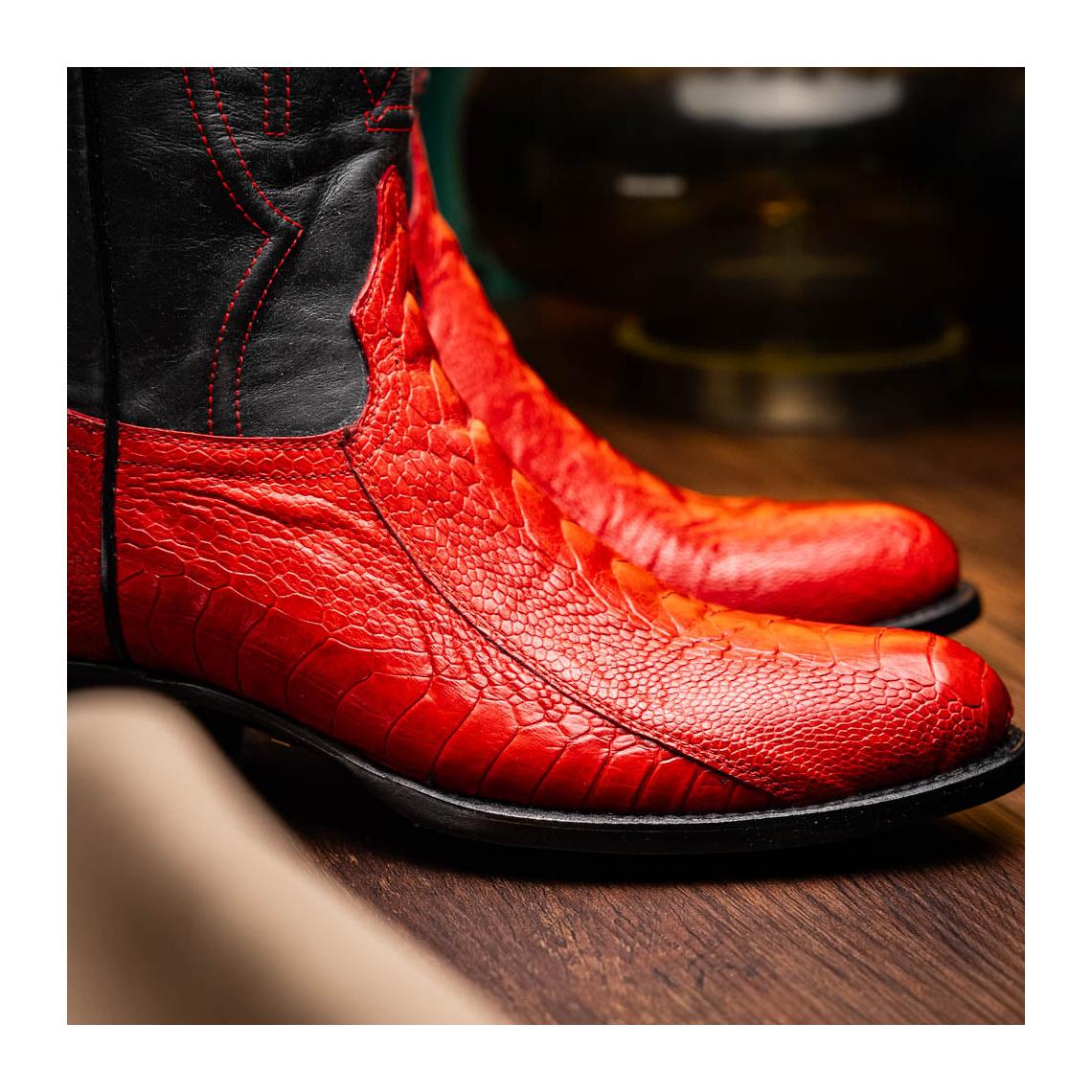 Marco Di Milano Denver Men's Shoes Red Exotic Ostrich Skin Cowboy Boot (MDM1216)