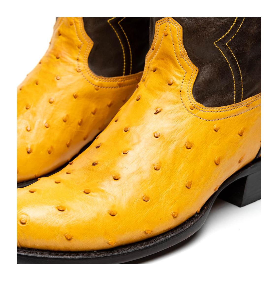 The SAVANNAH boot makes an entrance wherever it goes. Handcrafted from genuine full-quill ostrich skin and paired with full-grain leather on the shaft, this bold design blends classic cowboy craftsmanship with a head-turning modern palette. The round toe offers timeless Western comfort, while the striking red vamp, matching stitchwork, and signature red lining bring out a confident energy that sets it apart from the ordinary.