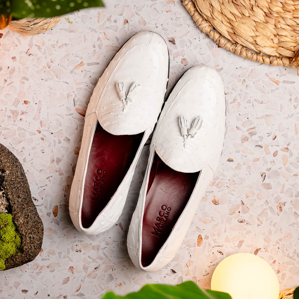 • Marco Di Milano Aubiere Men's Shoes White Exotic Ostrich Tassels Loafers (MDM1198)