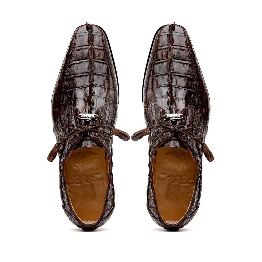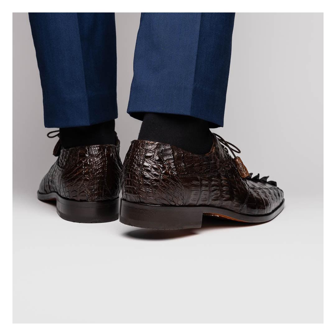 The CANCUN is our stunning genuine hornback caiman crocodile dress derby's featuring a 3D crocodile scale toe box, tasseled laces, and a polished hand finish that makes the crocodile texture pop. Dress these up with your favorite jeans or slacks for an out-of-this-world look.