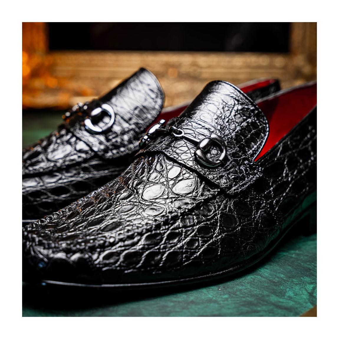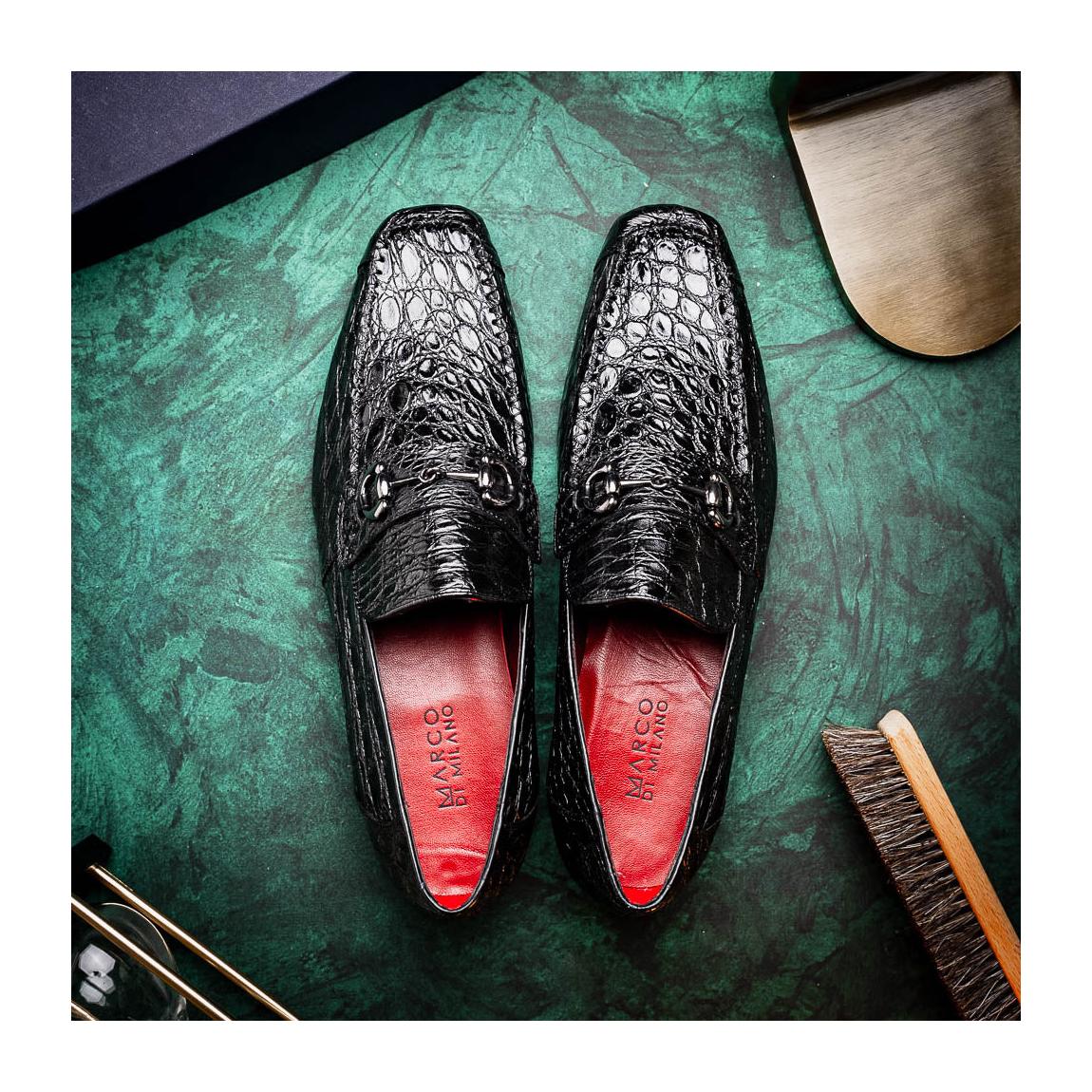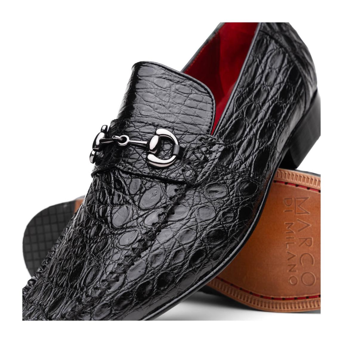 • Marco Di Milano Landro Men's Shoes Black Exotic Crocodile Horsebit Loafers (MDM1023)
