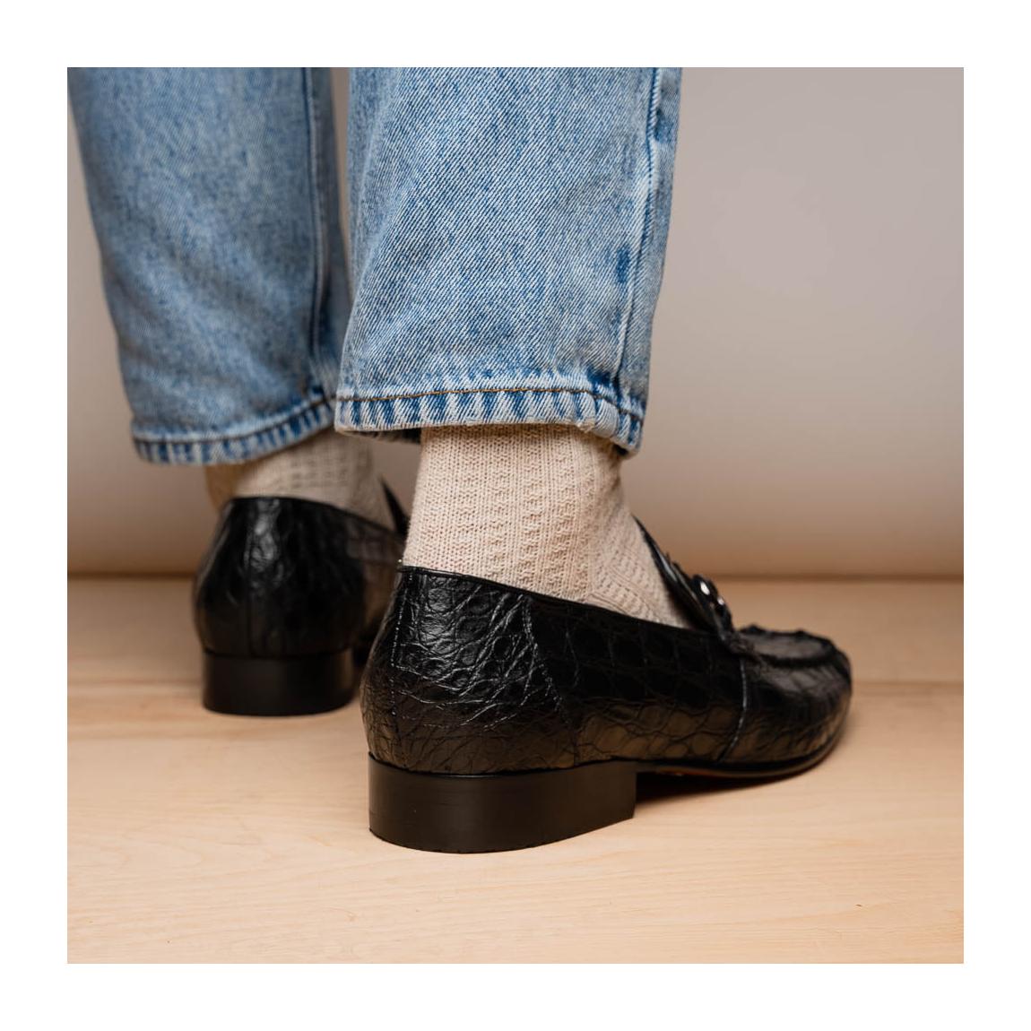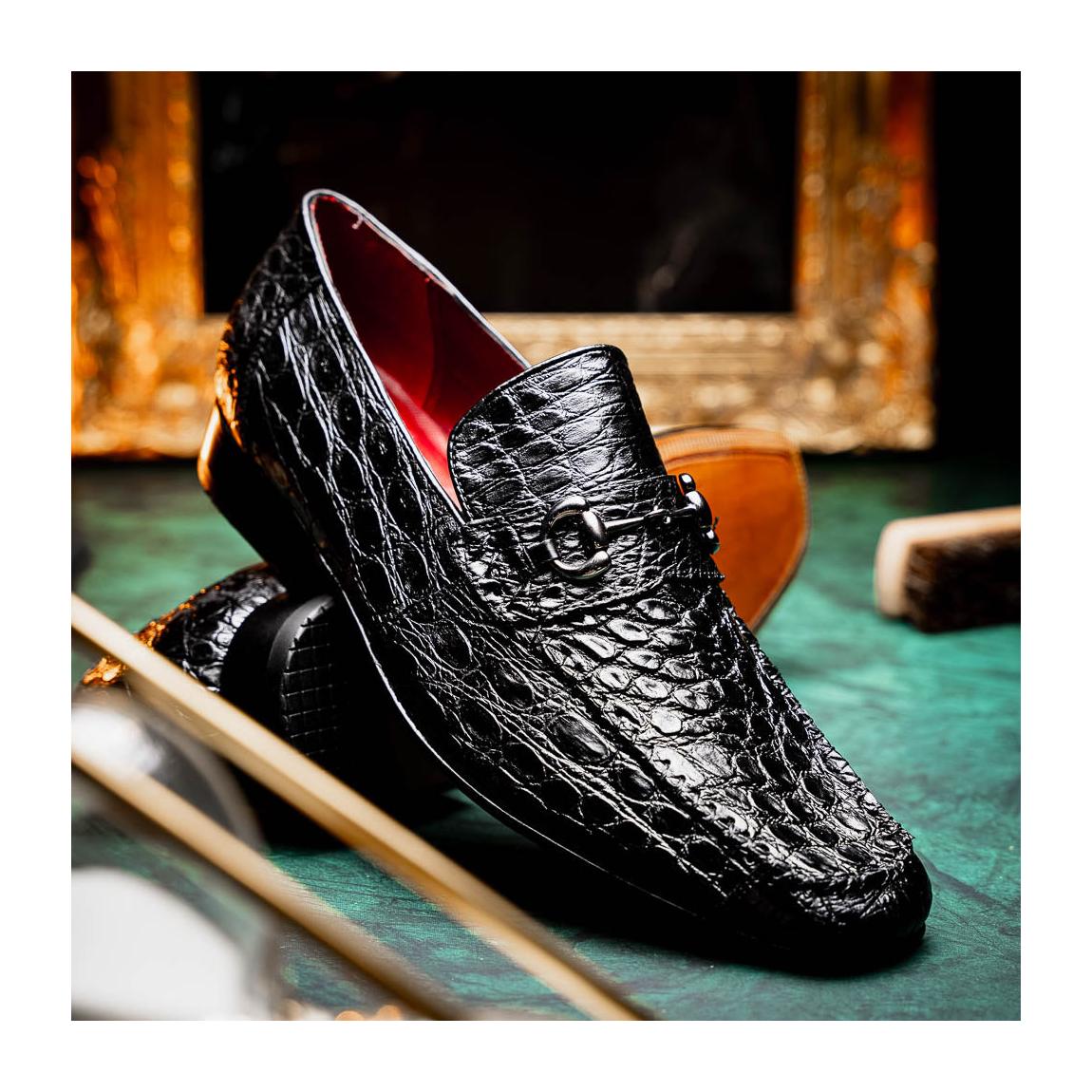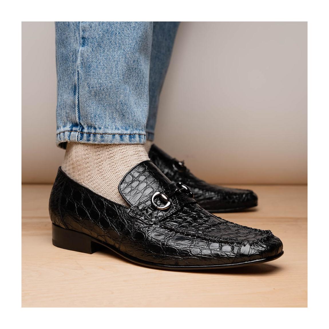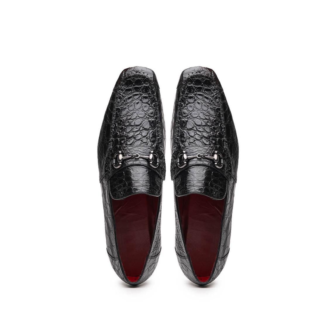 • Marco Di Milano Landro Men's Shoes Black Exotic Crocodile Horsebit Loafers (MDM1023)