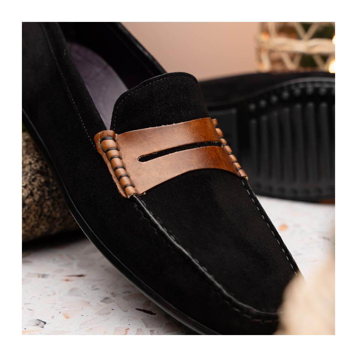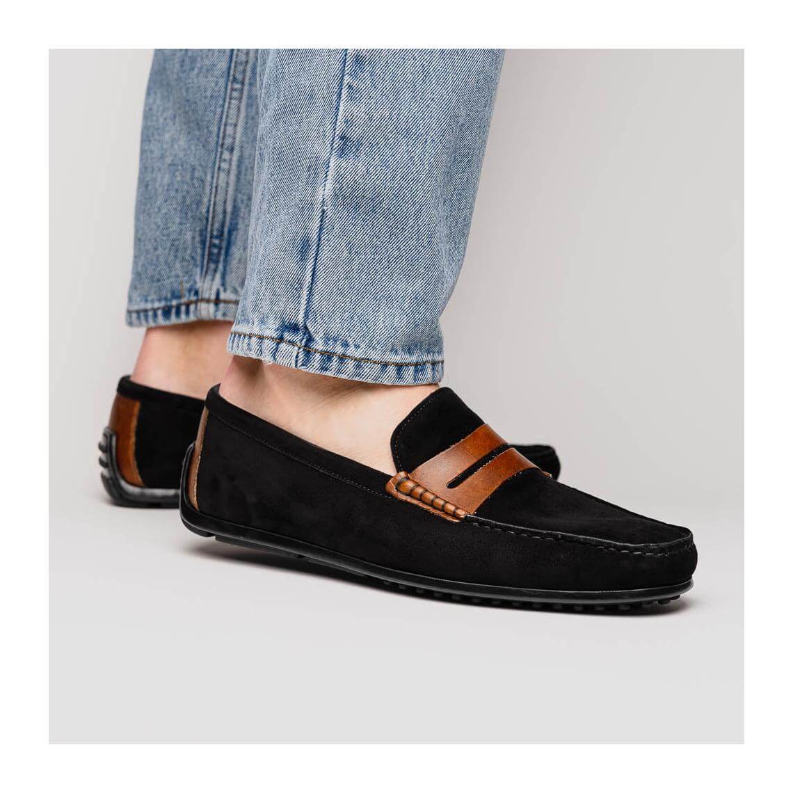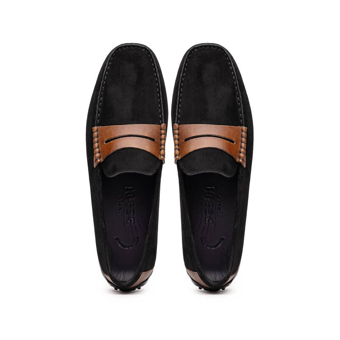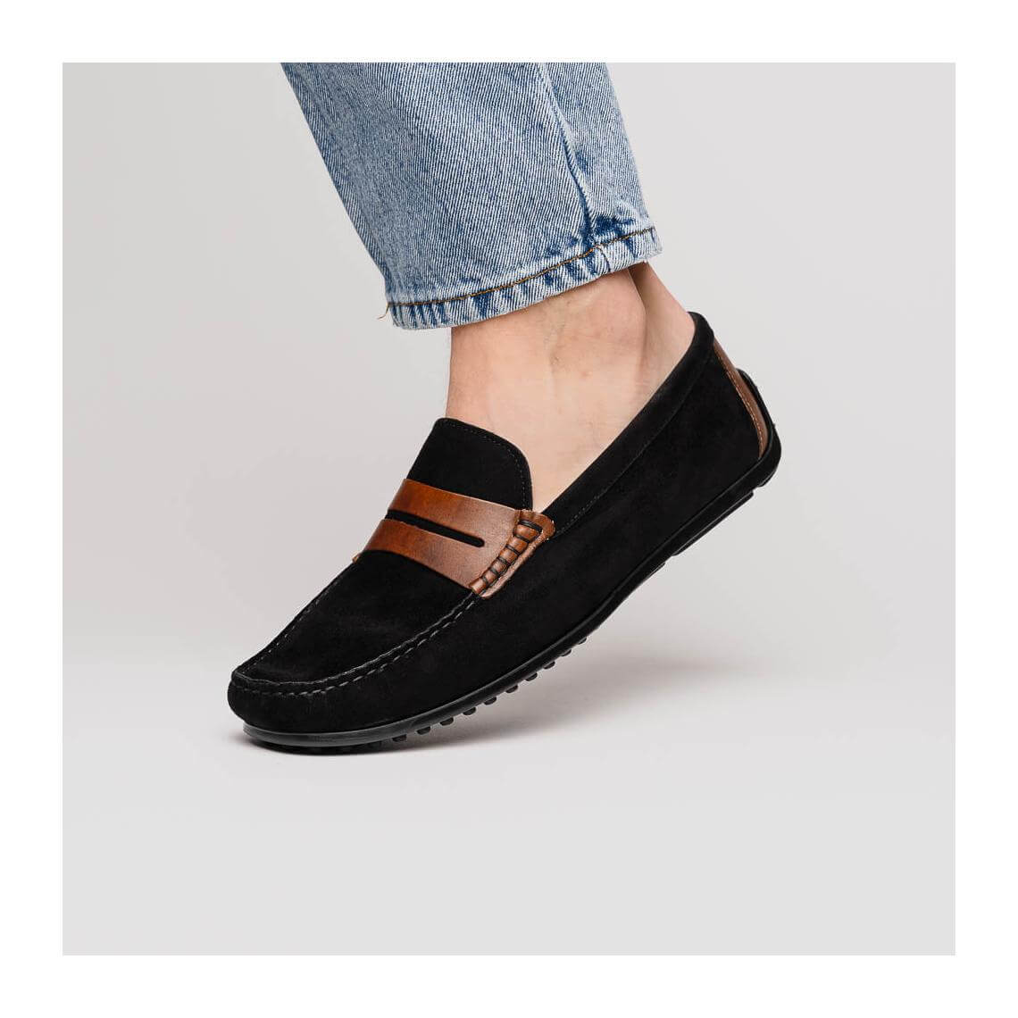 • Zelli Italia Monza Men's Shoes Black & Chestnut Calf-Skin Suede Driver (ZEL1045)