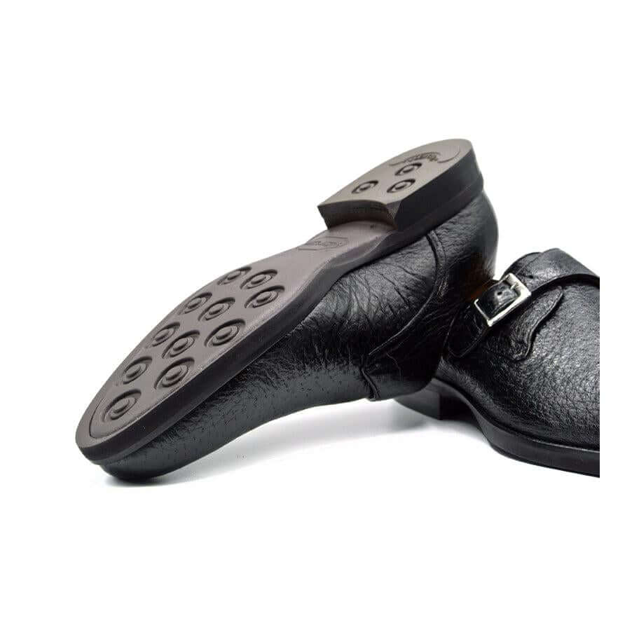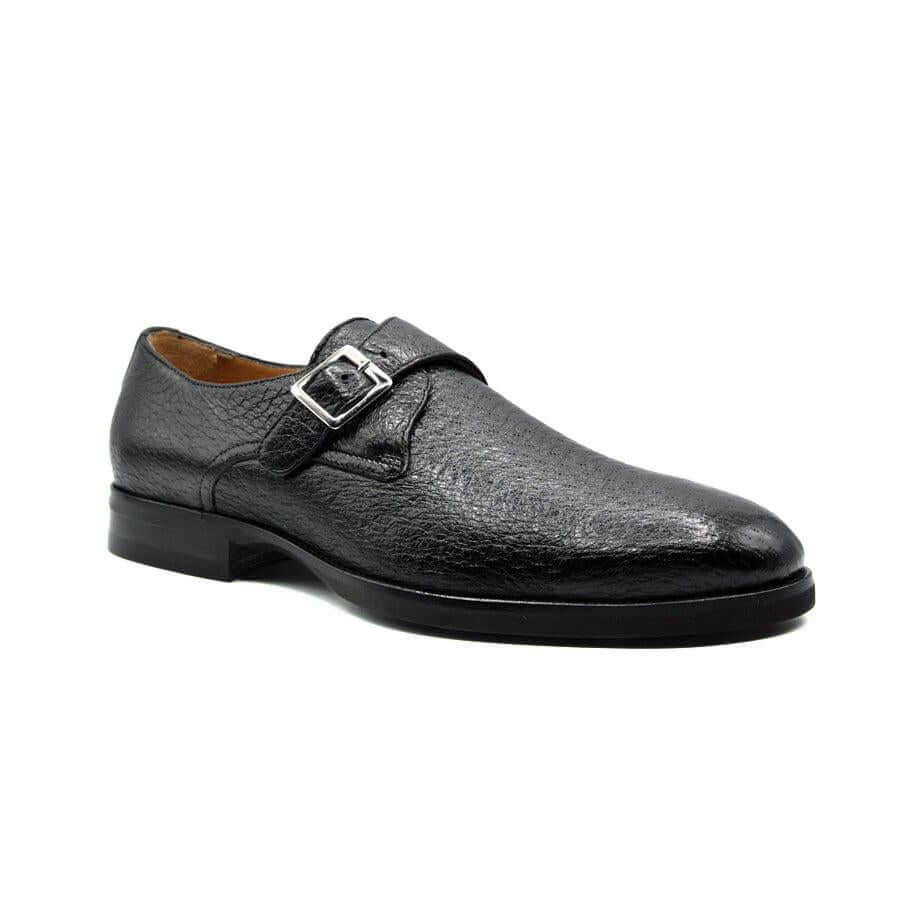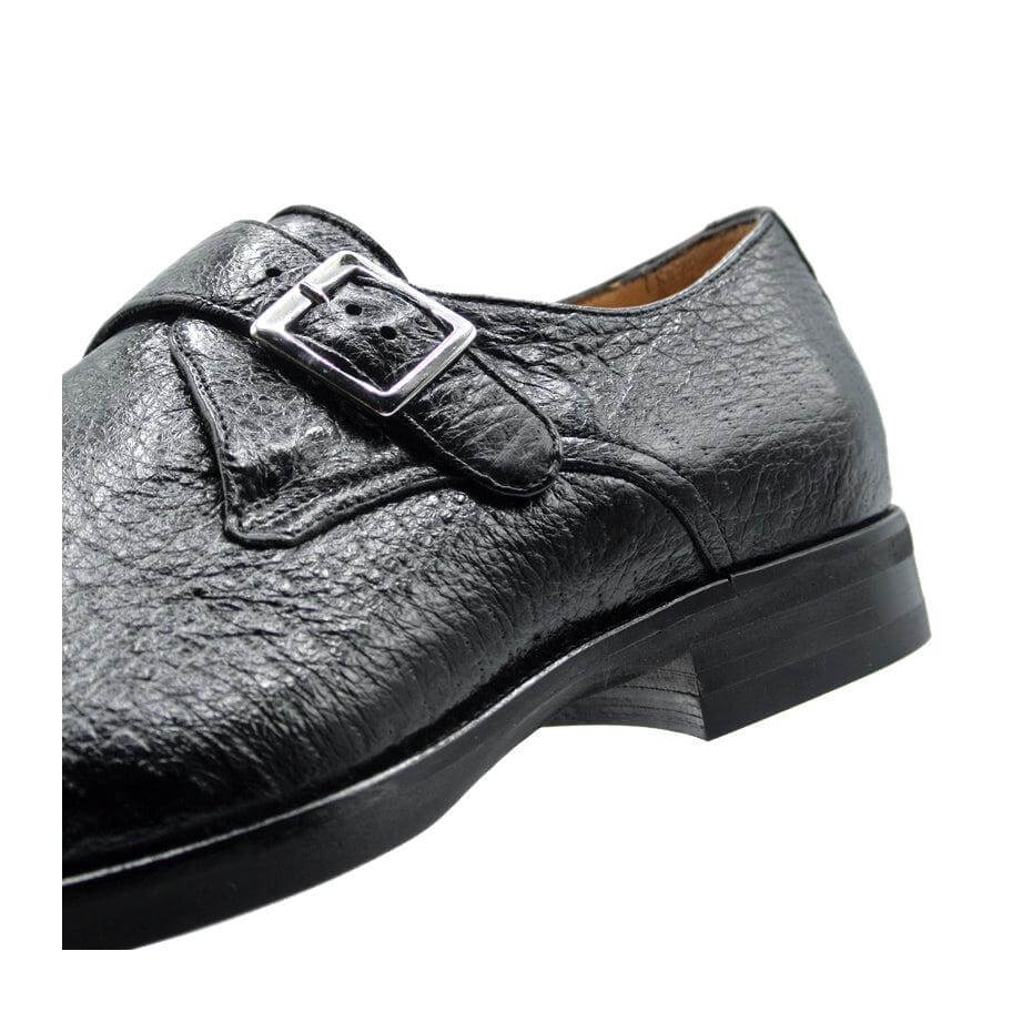 • Zelli Italia Roman Men's Shoes Black Peccary Leather Single Monk-Strap (ZEL1077)