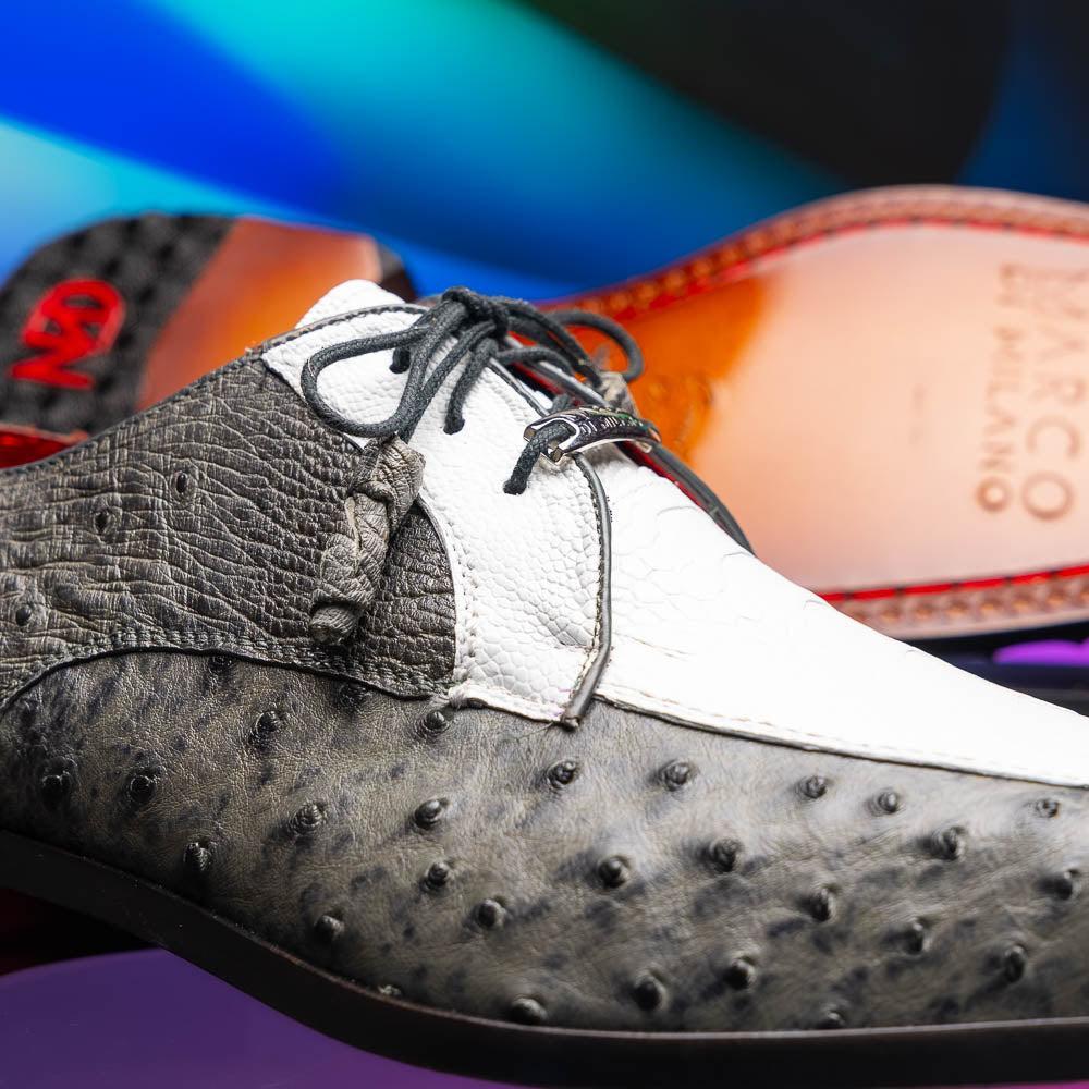 Marco Di Milano Andretti Men's Shoes White & Gray Exotic Ostrich Leg Derby (MDM1181)