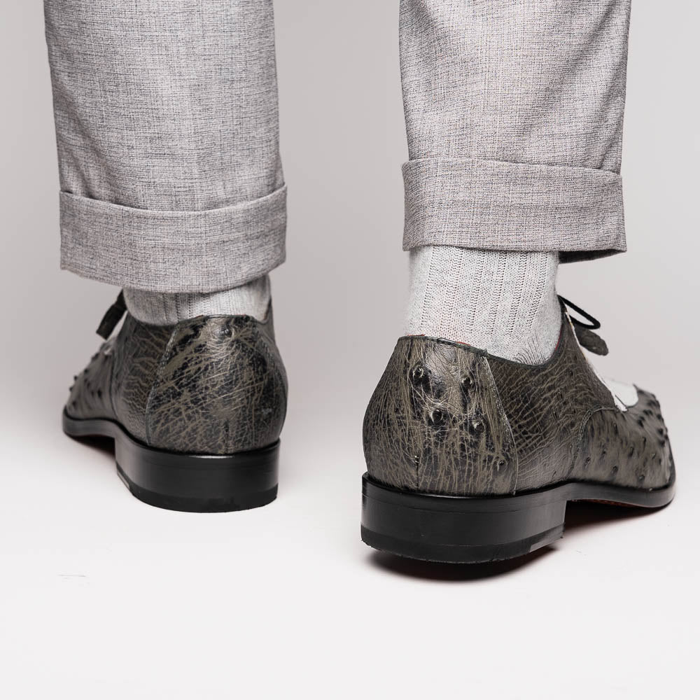 • Marco Di Milano Andretti Men's Shoes White & Gray Exotic Ostrich Leg Derby Oxfords (MDM1181)