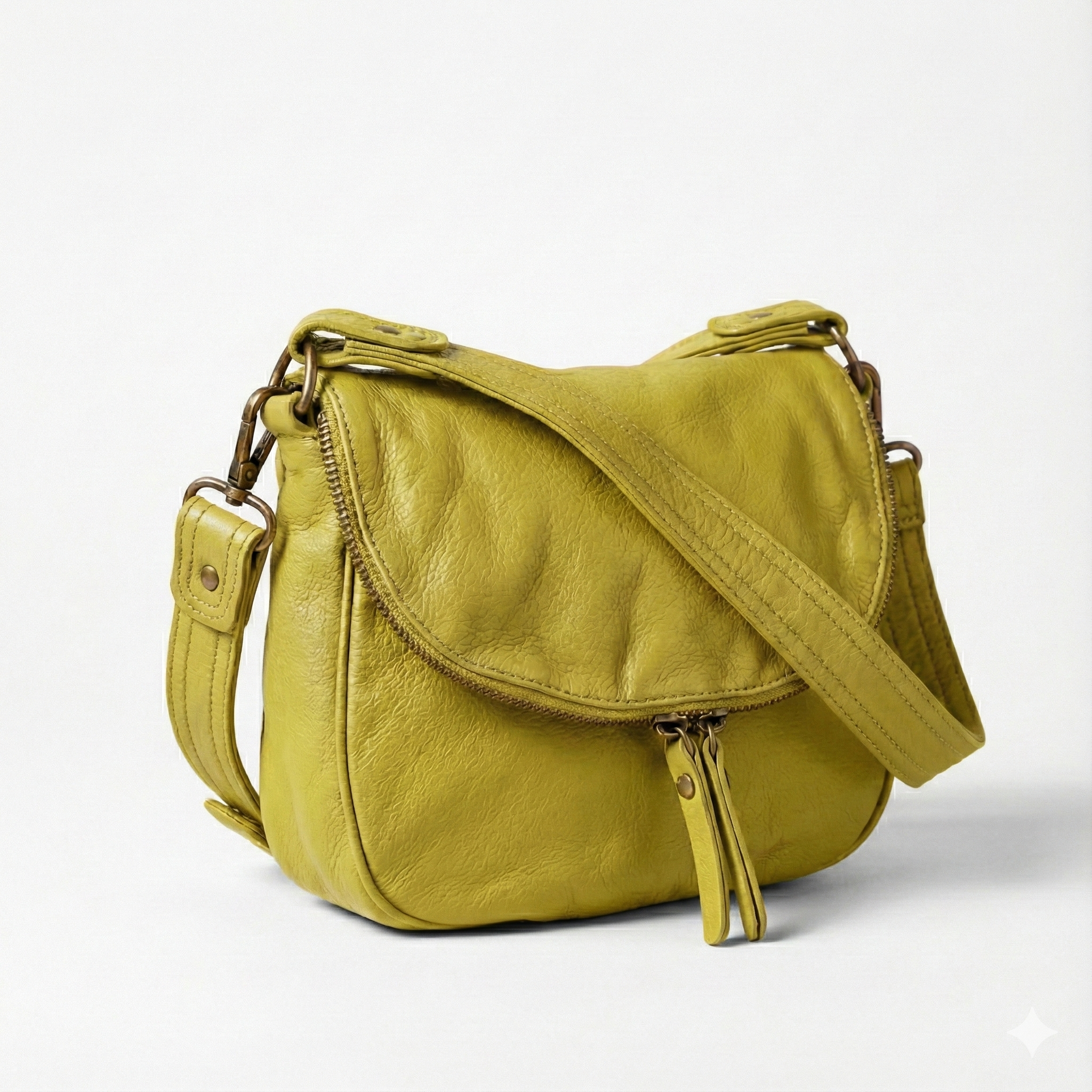 • Dellamoda Lamb Leather Handbag Sasha Messenger / Sling Yellow Lime Designer Bag TS10-13 (DM11)
