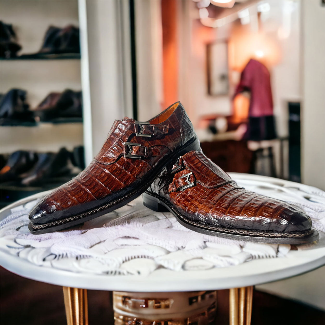 Mezlan 4990-F Men's Shoes Sport Brown Exotic Crocodile-Skin Double Monk-Straps Loafers (MZ3671)