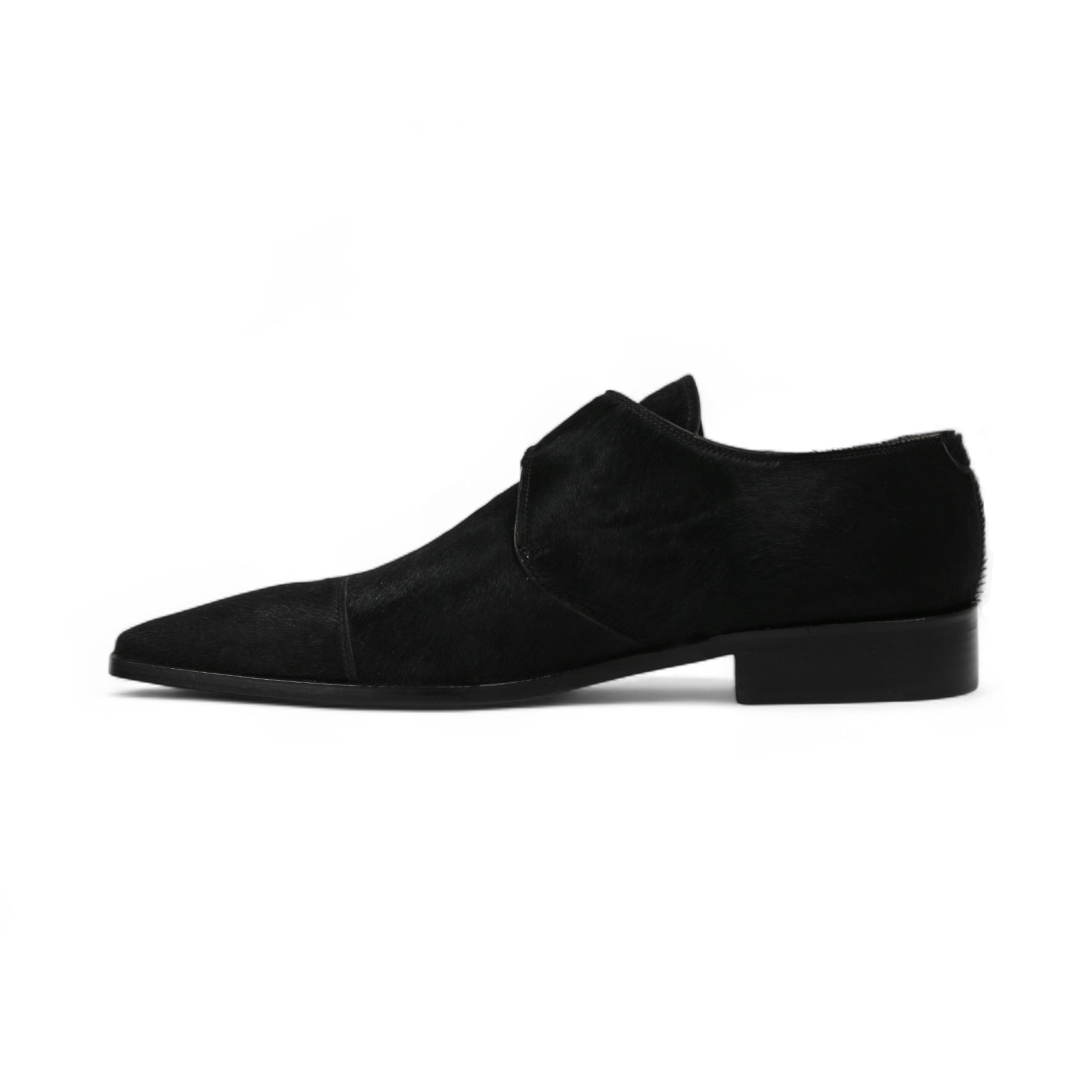 • Lowe Valentini Designer Mens Shoes Black Pony Gold-Plated Monk-Straps Loafers (LDM01)