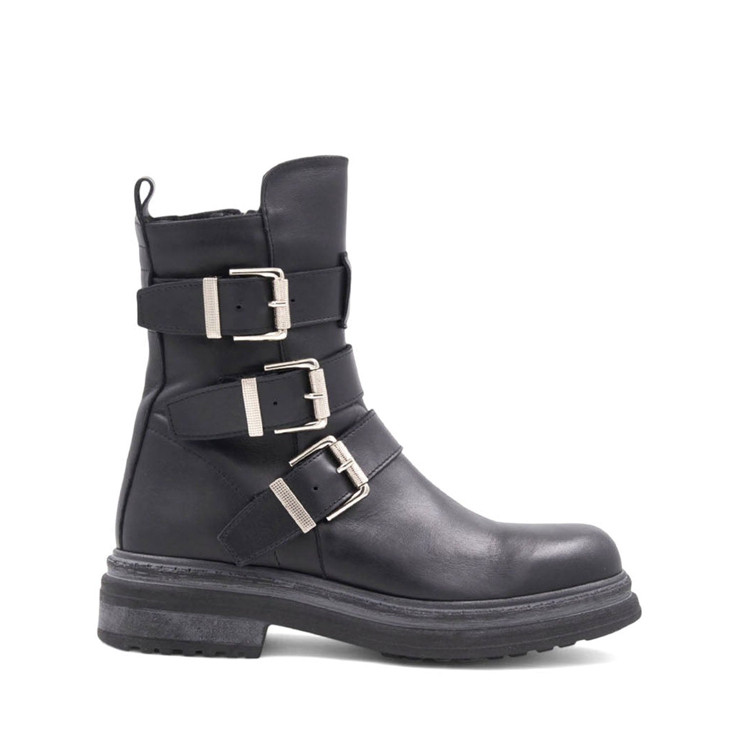 • Aquatalia Follina Women’s Shoes Calf-Skin Leather Zip-Up Triple Monk-Strap Boot (AQW1031)