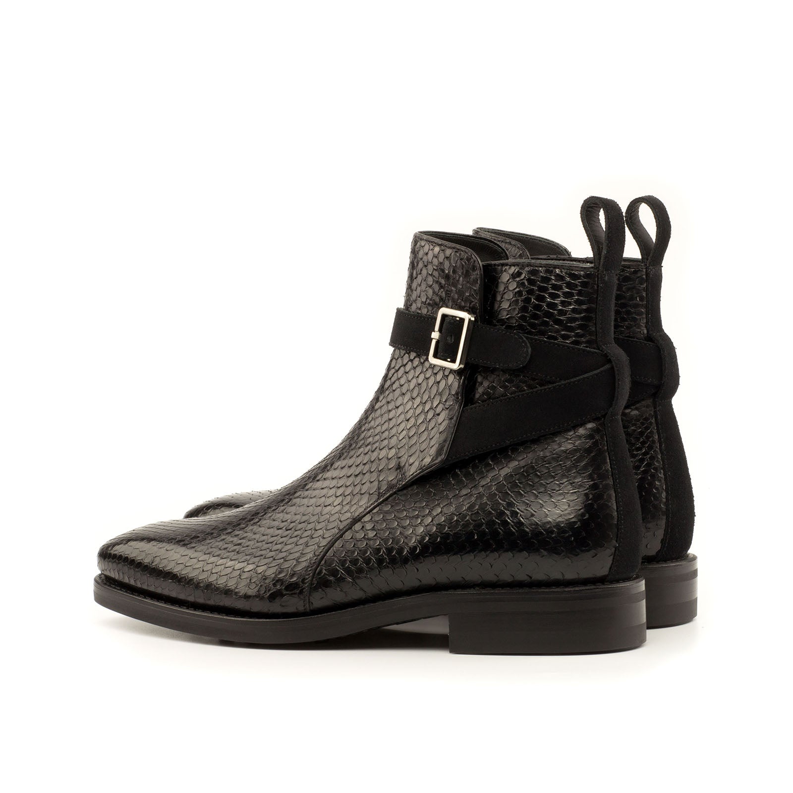 - Ambrogio 3674 Men's Shoes Black Exotic Snake-Skin / Suede Leather Jodhpur Boots (AMB1102)