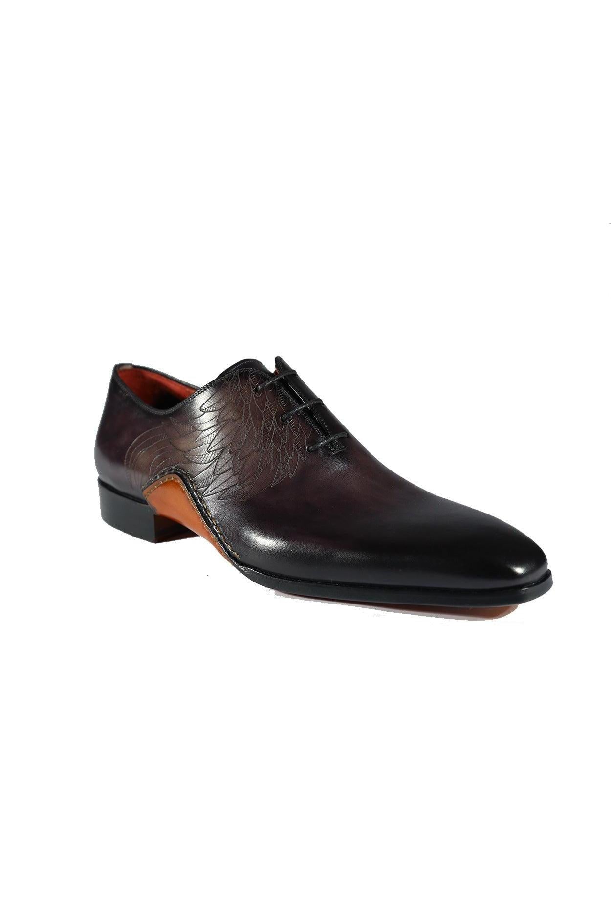 - Magnanni 24133 Men's Shoes Black & Gray Patina Leather Whole-cut Oxfords (MAGS1089)