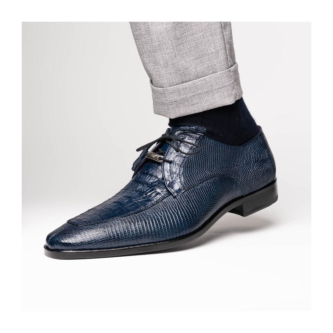 • Marco Di Milano Merida Men's Shoes Navy Lizard & Caiman Crocodile Derby Oxfords (MDM1132)