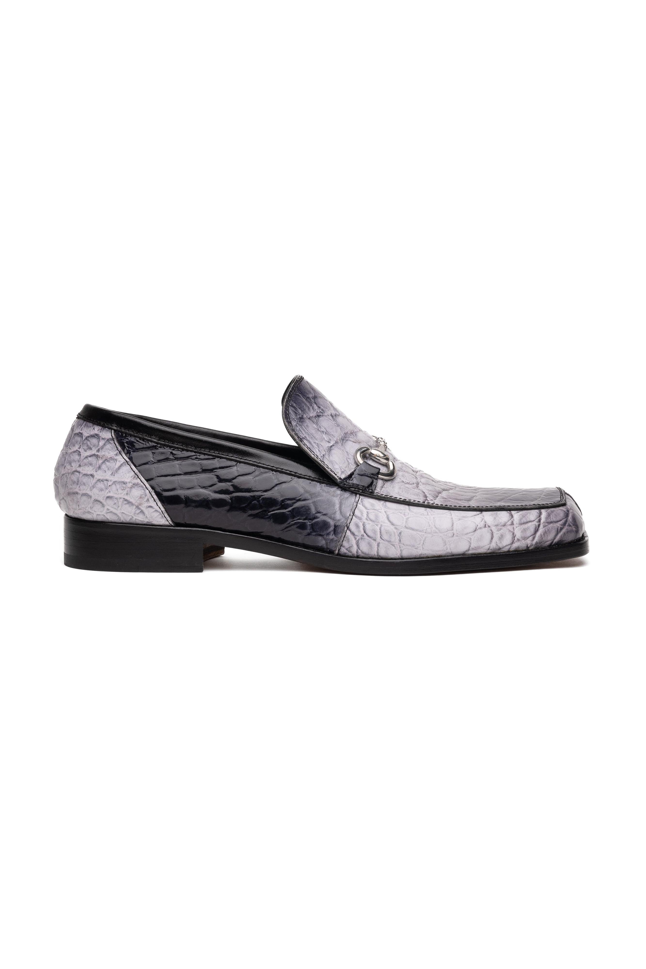 Mauri Switch 3290 Multi Gray & Black Exotic Alligator / Calf-Skin Leather Slip-On Horsebit Loafers (MA5602)(Made to Order) is a premium Men's Shoes by Mauri Special Order, crafted with exceptional quality, refined design, and attention to detail. This piece reflects a modern luxury standard, combining timeless style with high-end materials.