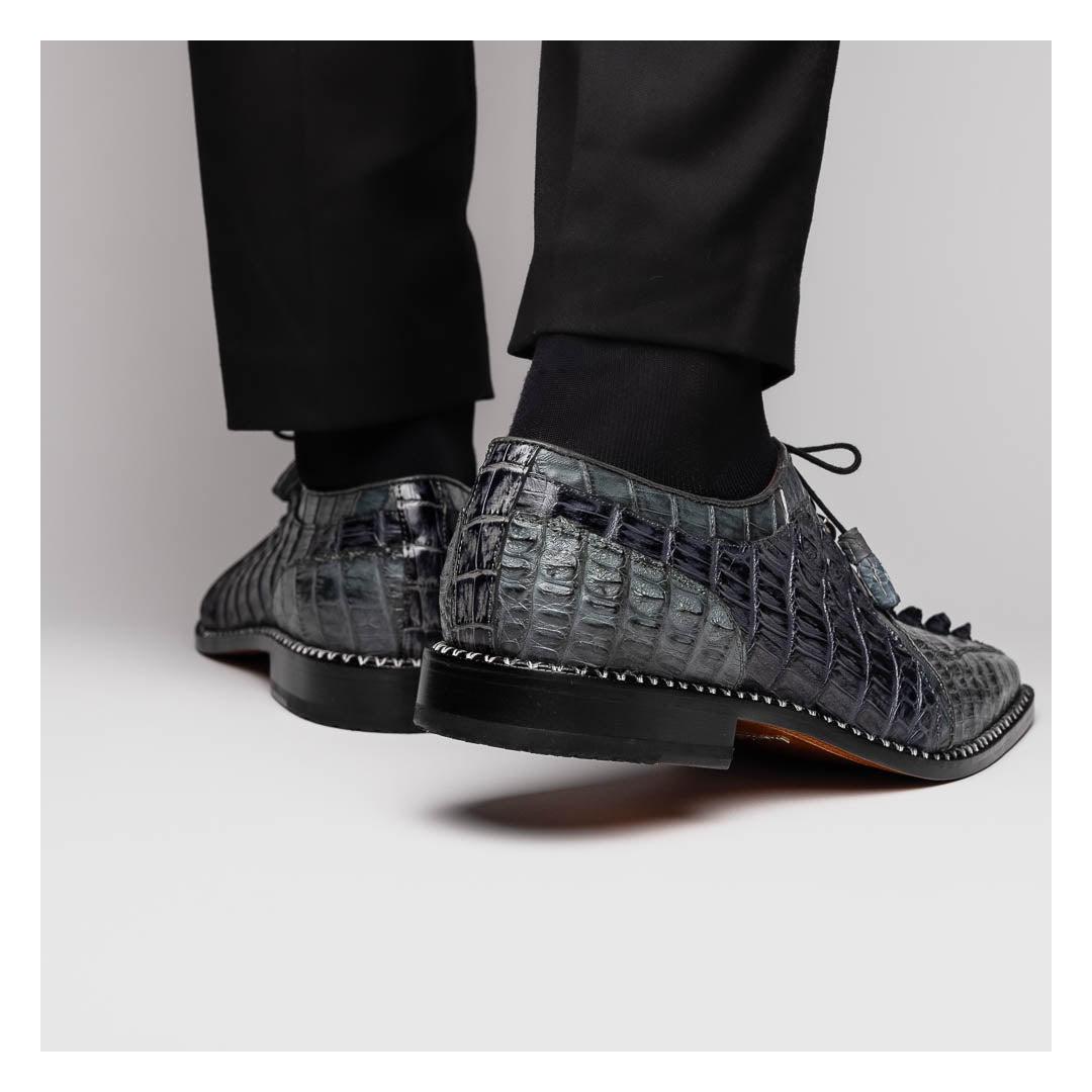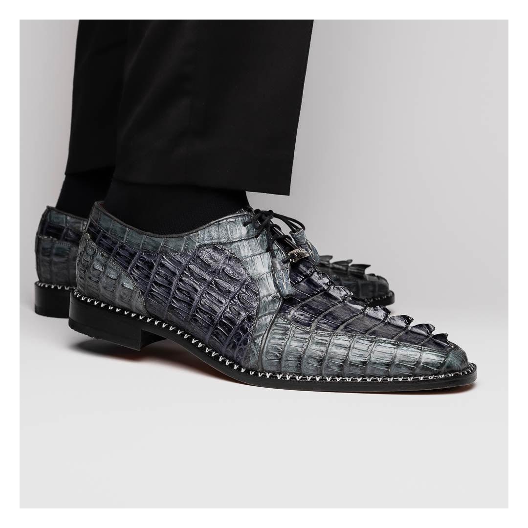 • Marco Di Milano Caribe Men's Shoes Dark Gray Genuine Hornback Caiman Crocodile Dress Derby Oxfords (MDM1118)