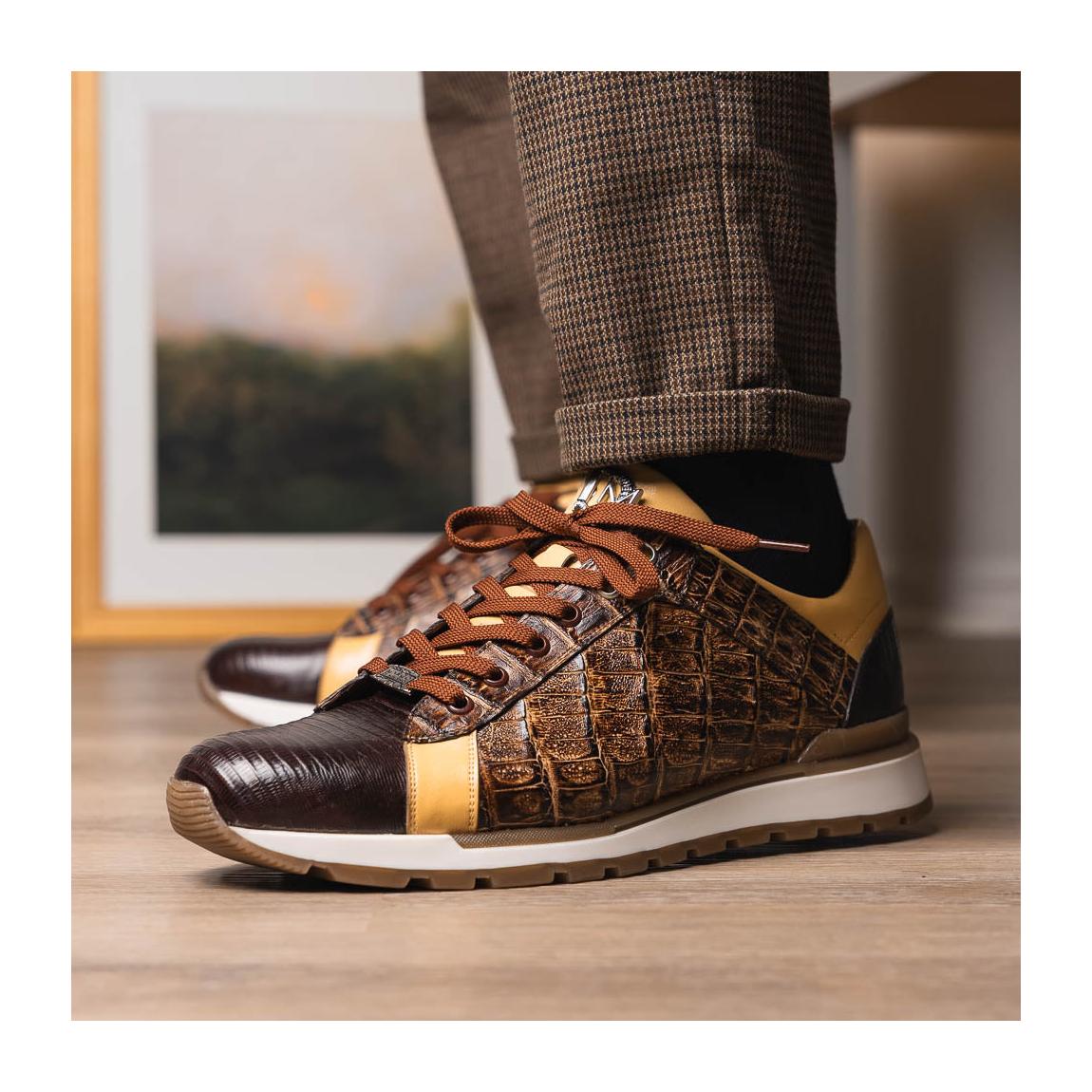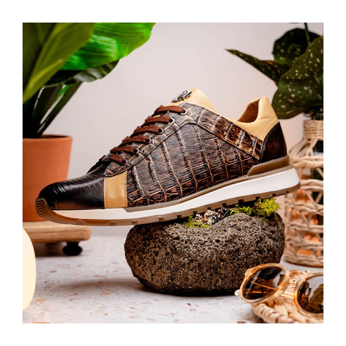 Marco Di Milano Portici Men's Shoes Orix & Brown Exotic Lizard / Crocodile Casual Sneakers (MDM1016)