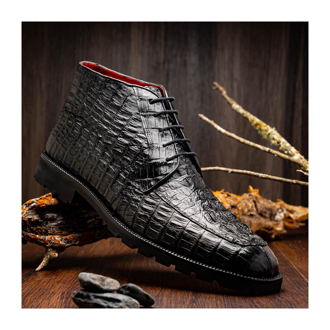 • Marco Di Milano Martinelli Men's Shoes Black Exotic Crocodile Chukka Boots (MDM1189)