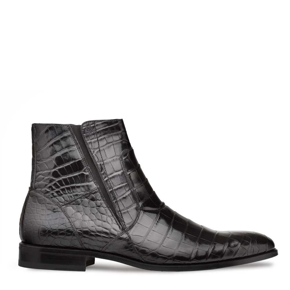 Mezlan 3663-J Belucci Men's Shoes Black Exotic Alligator Zipper Boots (MZ3699)