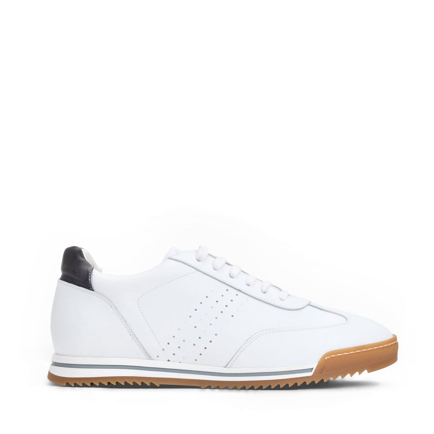 Casually refined and endlessly versatile, the Brozzi sneaker offers a modern take on classic low-profile styles. Crafted from smooth leather with perforated side panels and set on a durable gum rubber outsole, it delivers breathable comfort and reliable traction for everyday wear.